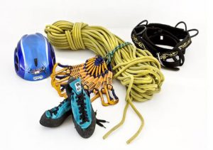 وسایل فنی سنگنوردی برای بالا رفتن و صعود کردن در طبیعت و سالن نیاز ورزشکاران است. طناب، هارنس، کفش و کلاه نمونهای از تجهیزات فنی میباشند.