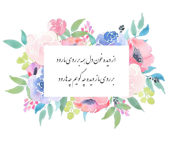 پیوسته خون دل، از چشمانم بر روی چهرهام جاری و روان است. چه بگویم که از دست چشمم بر صورت ما چه میگذرد و چه اشکهایی جاری است؟
