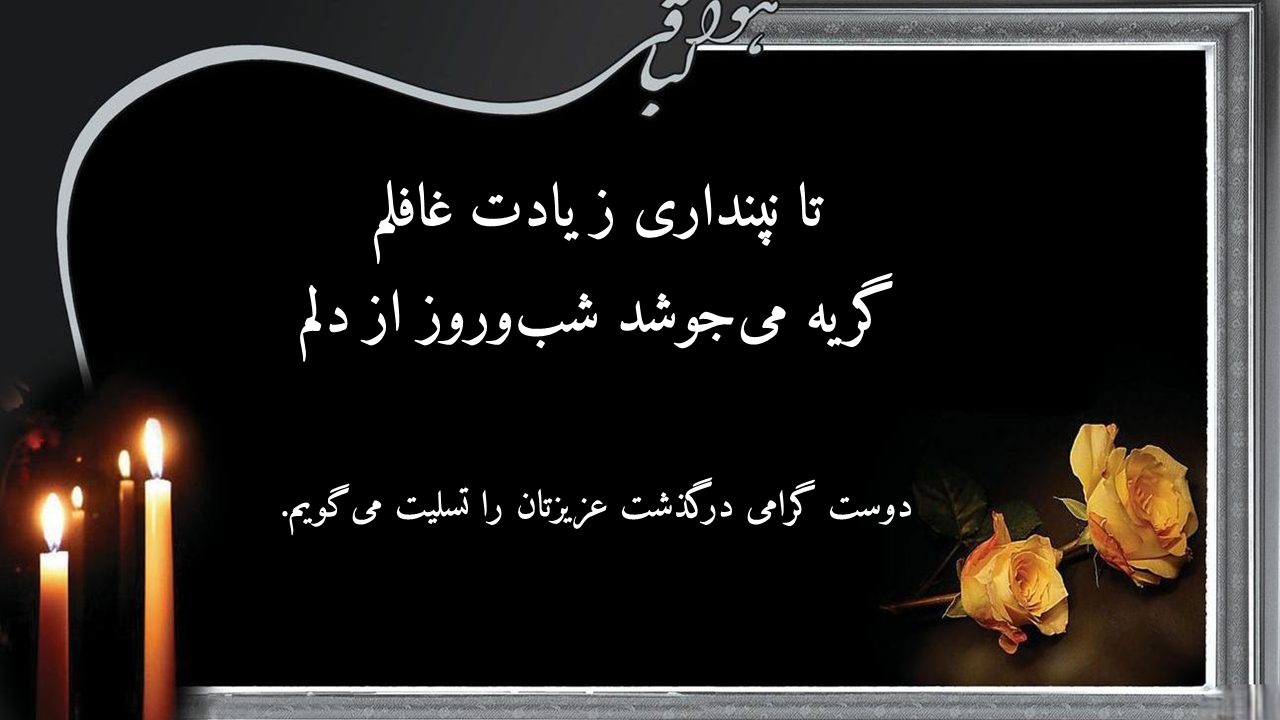 دوست عزیز ارجمند. دلم از درد درگذشت … عزیزت شکست. تسلیت مرا پذیرا باش و مرا در غم خودت شریک بدان.