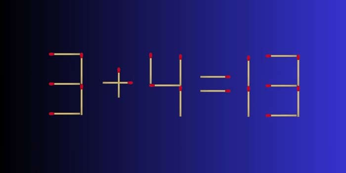 پاسخ معمای چوب کبریت ۱۳=۴+۳