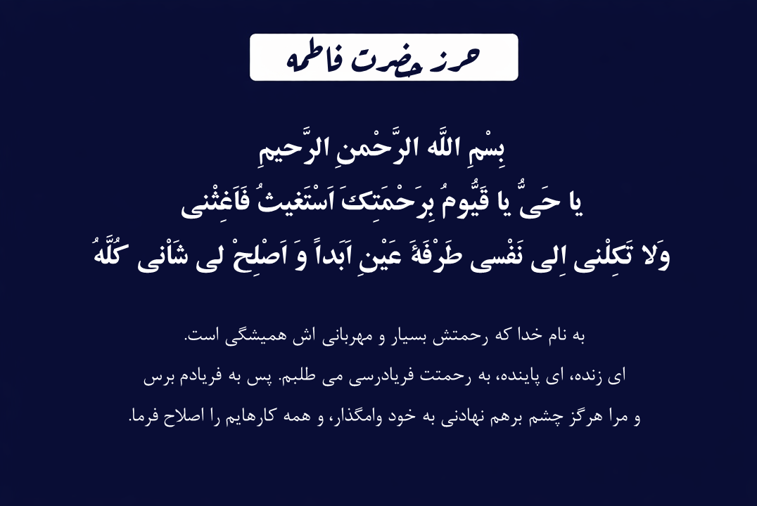 این دعا و حرز حضرت فاطمه بدین شرح است: