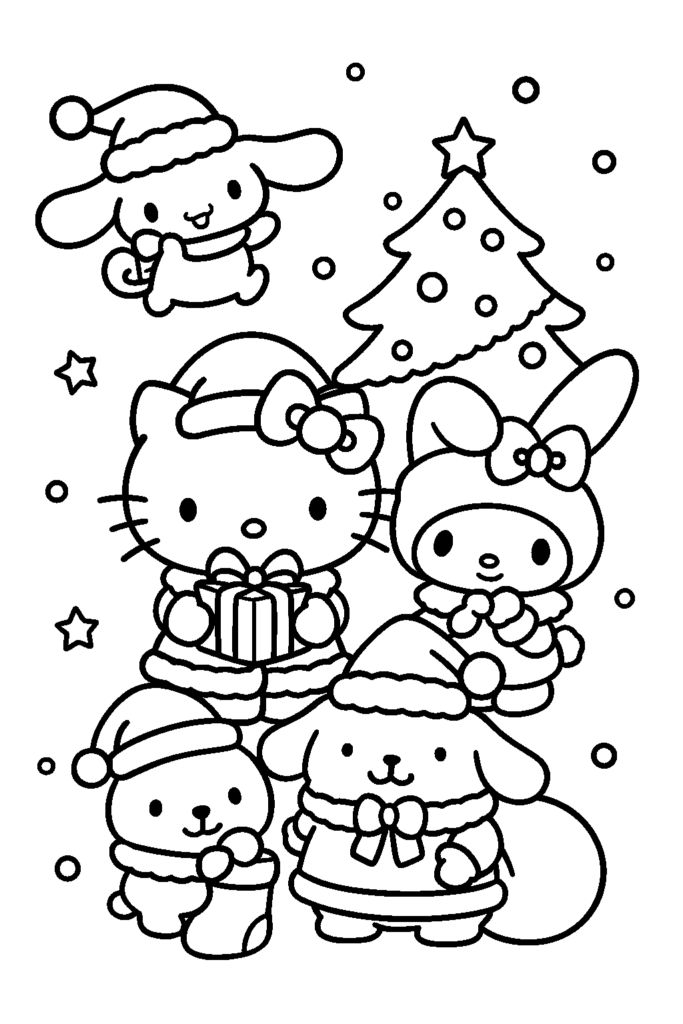 نقاشی کودکانه کیتی با دوستان برای رنگ آمیزی