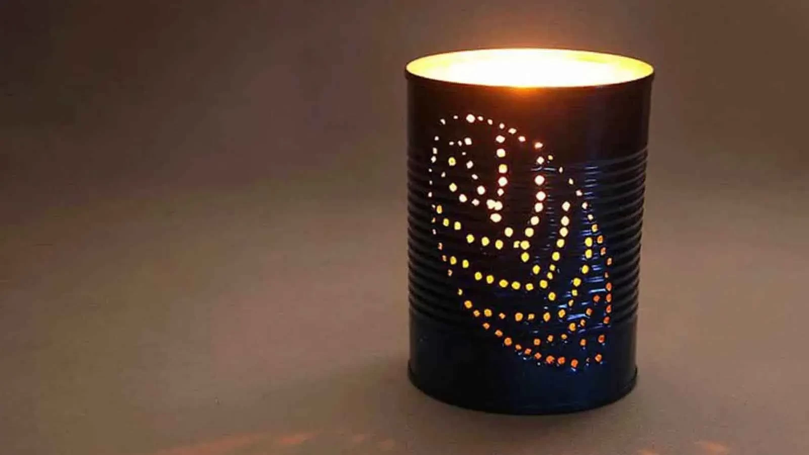 ۳- سوراخهای دیگری نیز به صورت دلخواه یا شکلهای هندسی بر روی بدنهی کنسرو ایجاد کنید.
