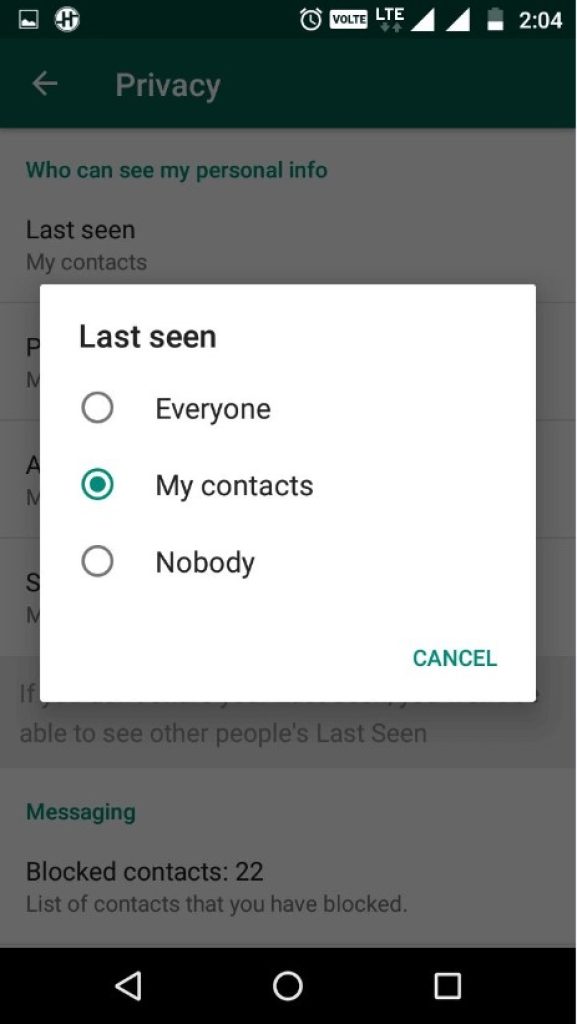 توجه: پس از انتخاب عبارت Nobody شما نیز نمیتوانید از «آخرین بازدید» دوستانتان مطلع شوید.