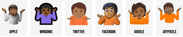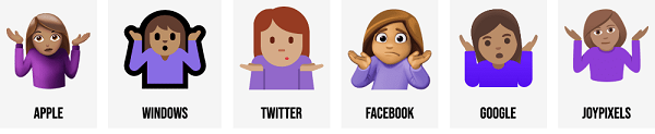 ایموجی زنانه این فرد در برخی پلت‌فرم‌ها به شرح زیر است: