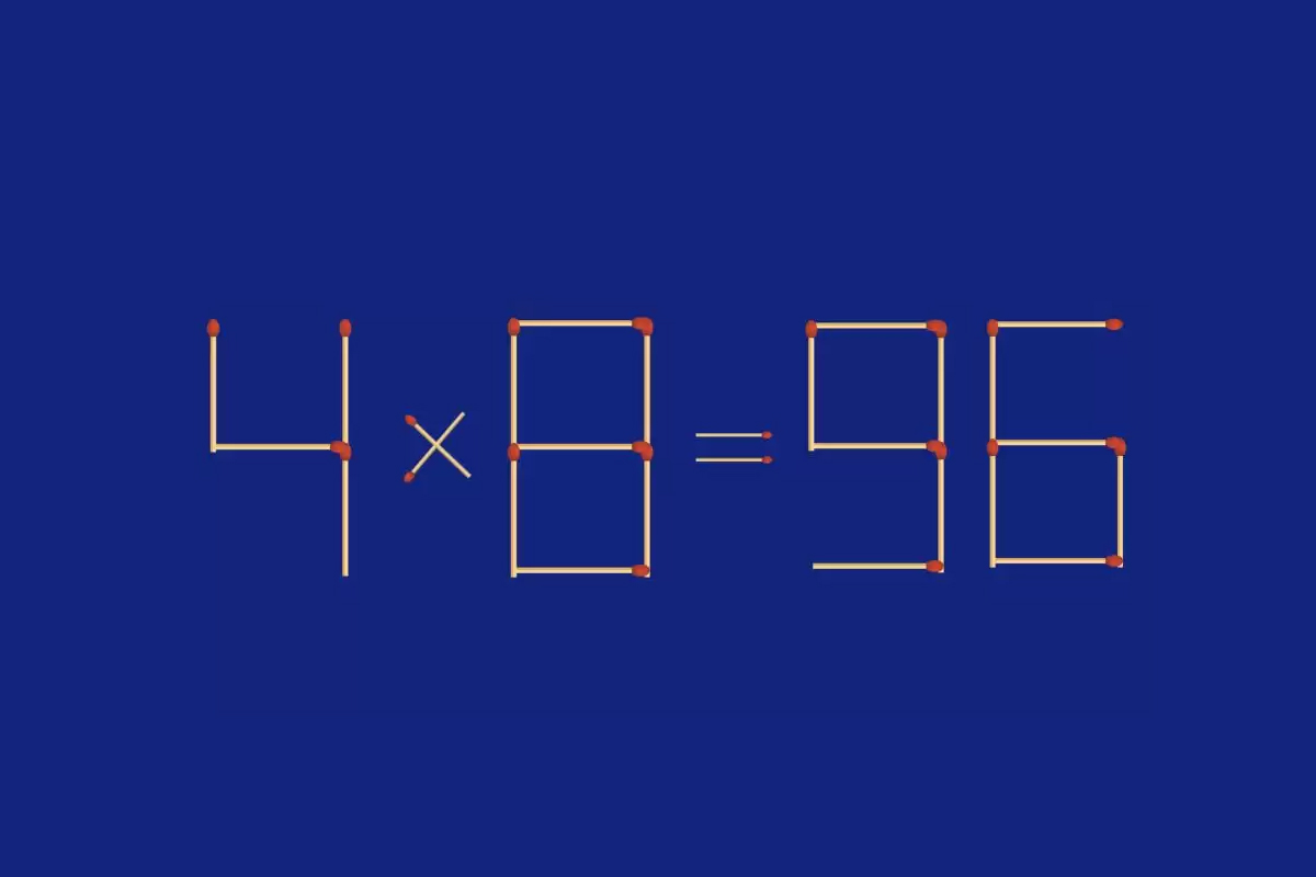اگه میتونی با حذف ۲ تا چوب کبریت این تساوی ۹۶=۸×۴ را برقرار کن!