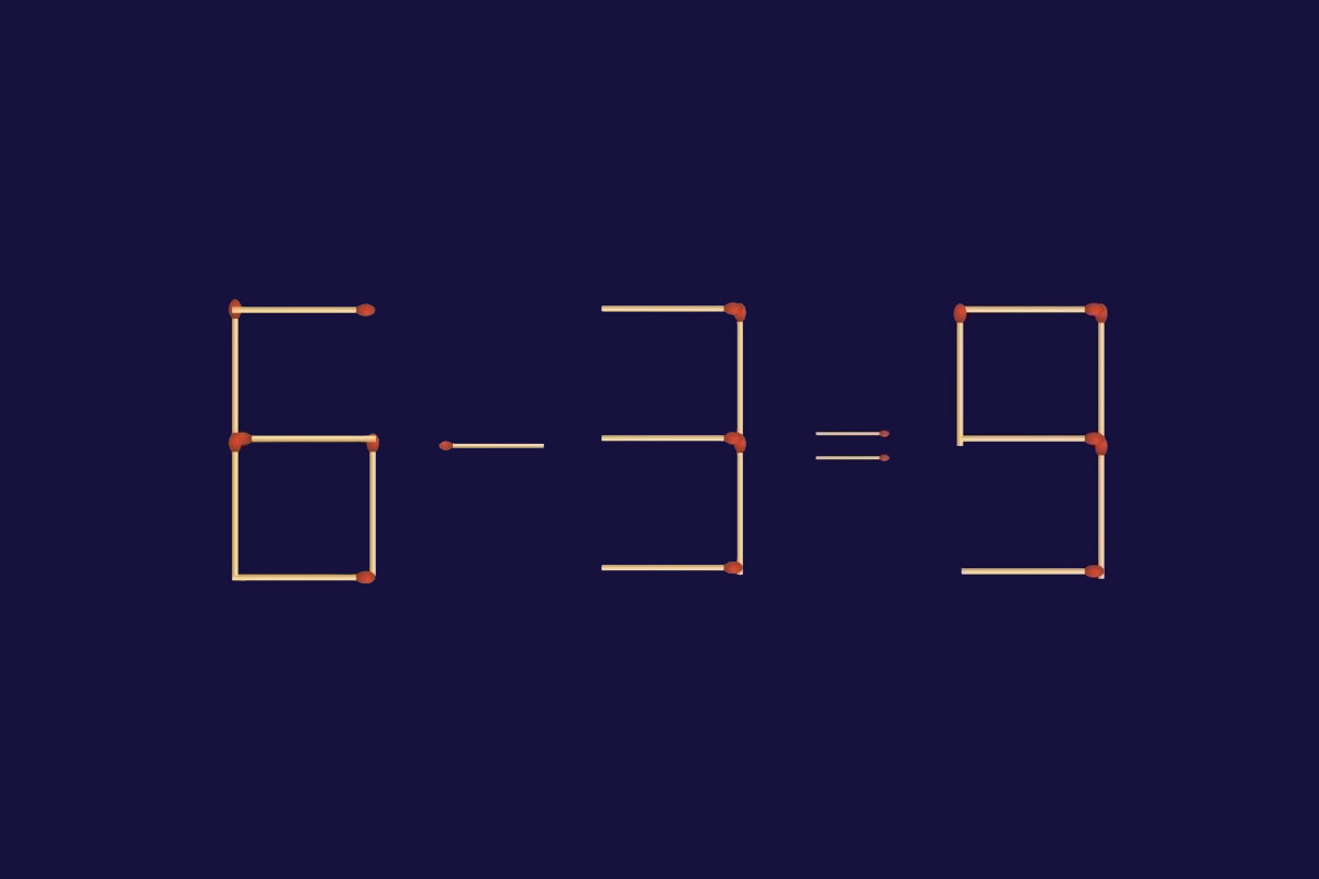 میتونی با جابجایی یه چوب کبریت مشکل معادله ۴=۳-۹ رو حل کنی؟