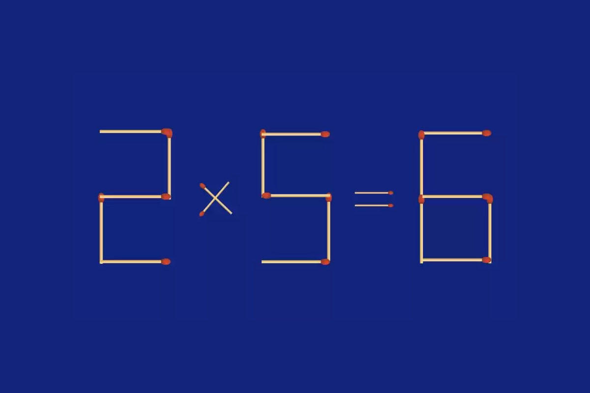 معمای چوب کبریت؛ تساوی ۶=۲×۵ را با جا به جایی دو چوب کبریت برقرار کن!