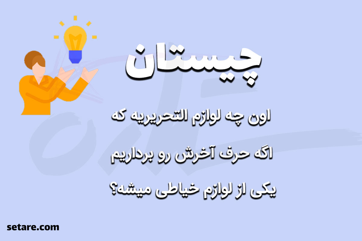 اون چه لوازم التحریریه که اگه حرف آخرش رو برداریم یه وسیله خیاطی میشه؟