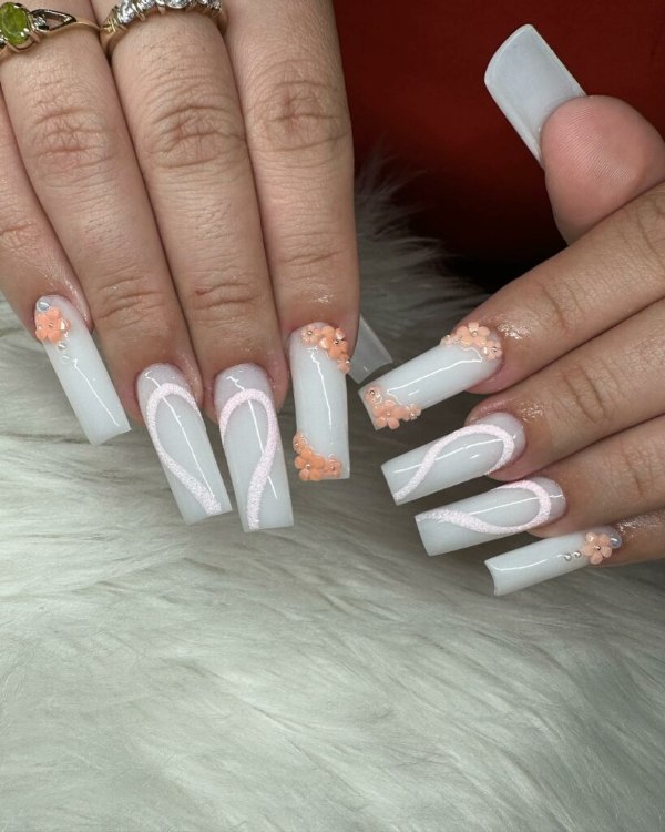 وقتی آنقدر زیبا هستند، چرا ترند جدید شیک ناخنهای گلگلی با زمینه سفید را برای قرار مانیکور این ماه خود انتخاب نکنید؟