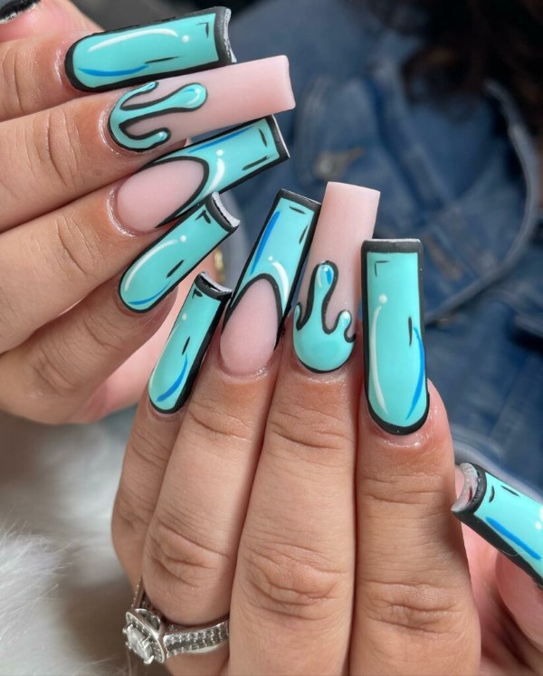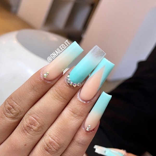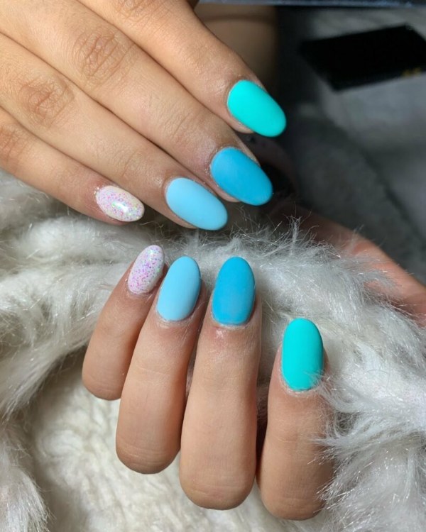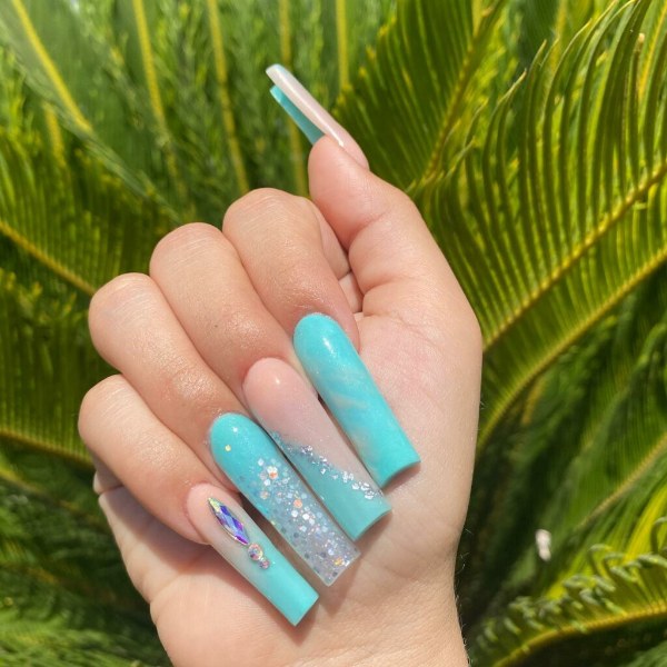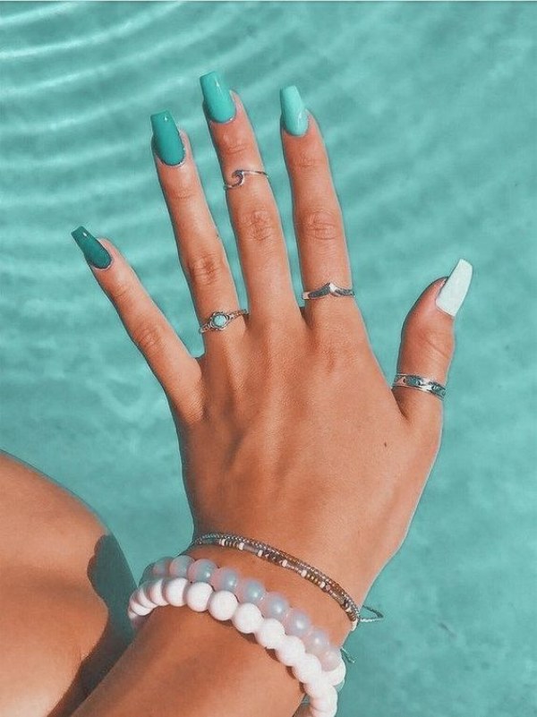 ترکیب رنگ آکوا با رنگ پوست برنزه و سفید، بسیار عالی است. سایه رنگ آبی آکوا چیزی بین آبی نئون، سرمه ای، فیروزهای و کمرنگ است و انتخابی عالی برای یک مانیکور تابستانی به شمار میرود. این رنگ در اینستاگرام به نظر میرسد جز چند رنگ برتر تابستانی شده است.