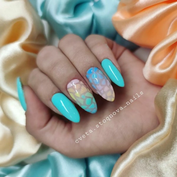 طرح ناخن به رنگ آکوا