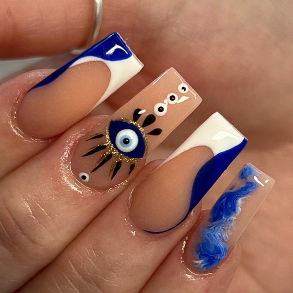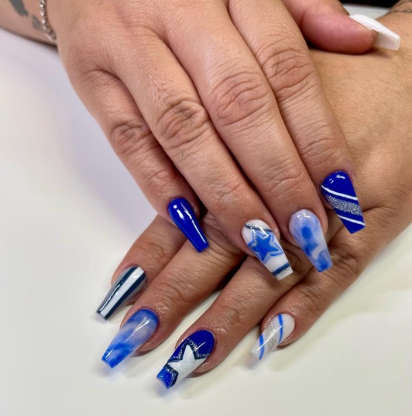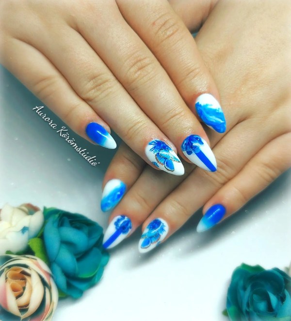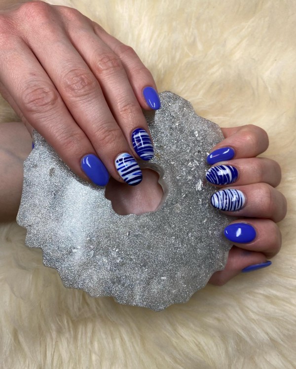 کلمهها برای بیان زیبایی این ناخنها قاصرند. این بار ترجیح میدهیم سکوت کنیم و صرفا شما را به تماشای این طرحهای زیبا از ترکیب رنگ سرمهای و سفید برای ناخن دعوت کنیم. مطمئنا شما هم مجذوب زیبایی و خاص بودن این ناخنها خواهید شد.