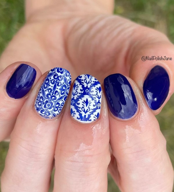 ترکیب سرمهای و سفید برای ناخن