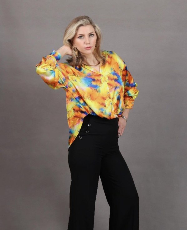 شومیز آبرنگی طرحی لطیف و دخترانه است که با استایلهای زیادی ست میشود.