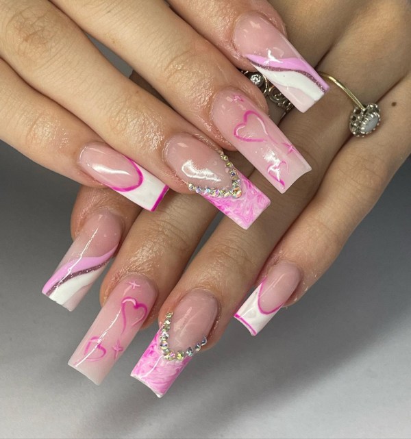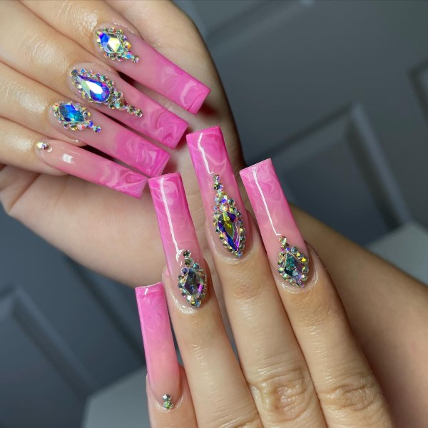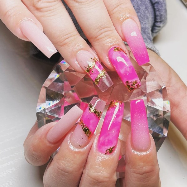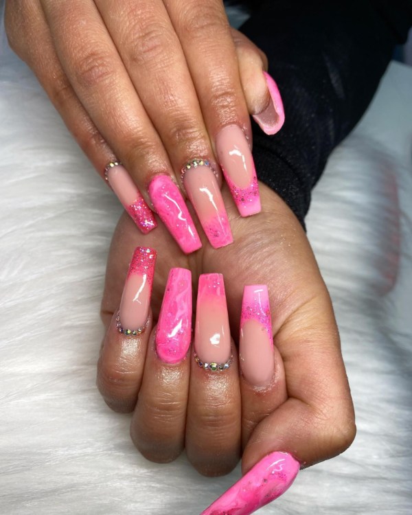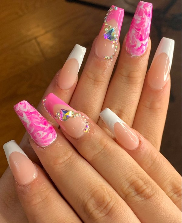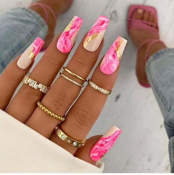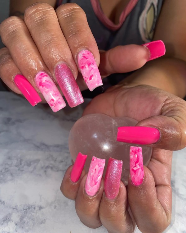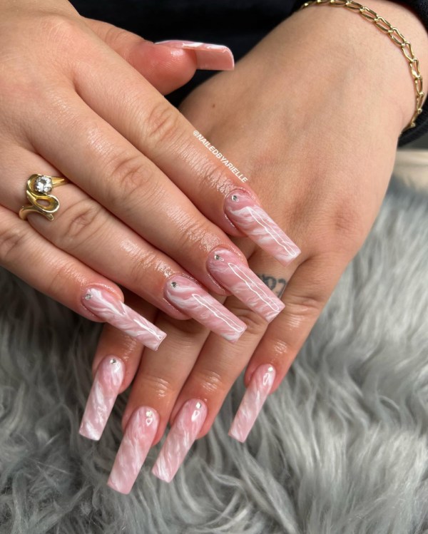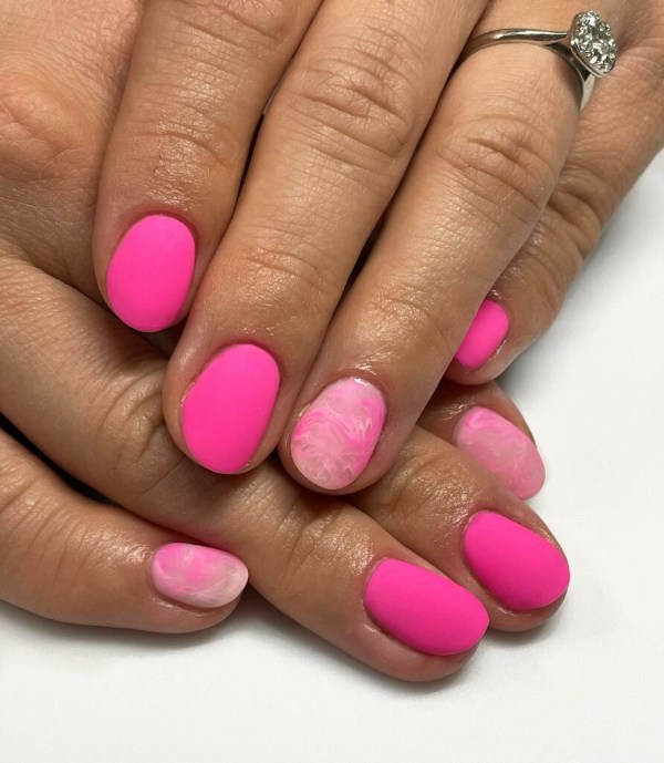 چه ناخنهای شما کوتاه باشند چه گلدانی شکل، چه فرم آنها مربعی باشد چه گرد، طرح ناخن صورتی مرمری انتخابی زیبا برای هر ناخنی است.