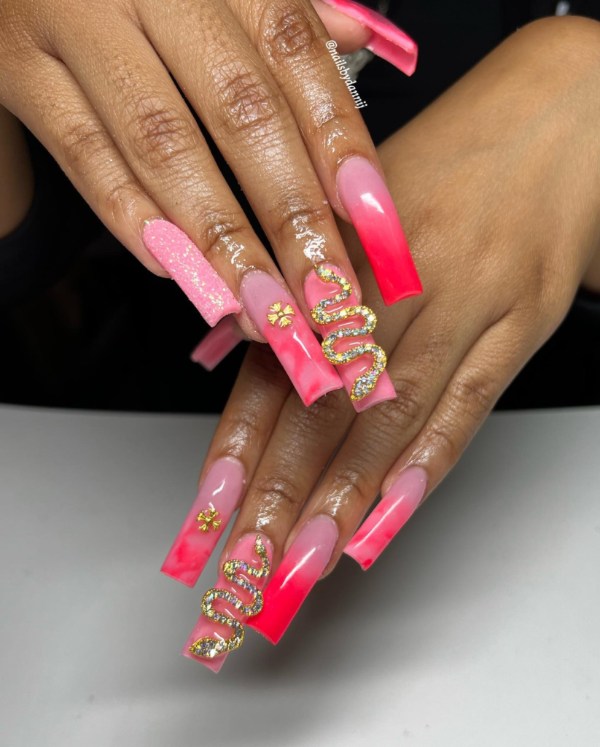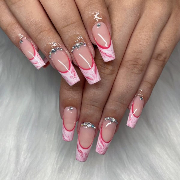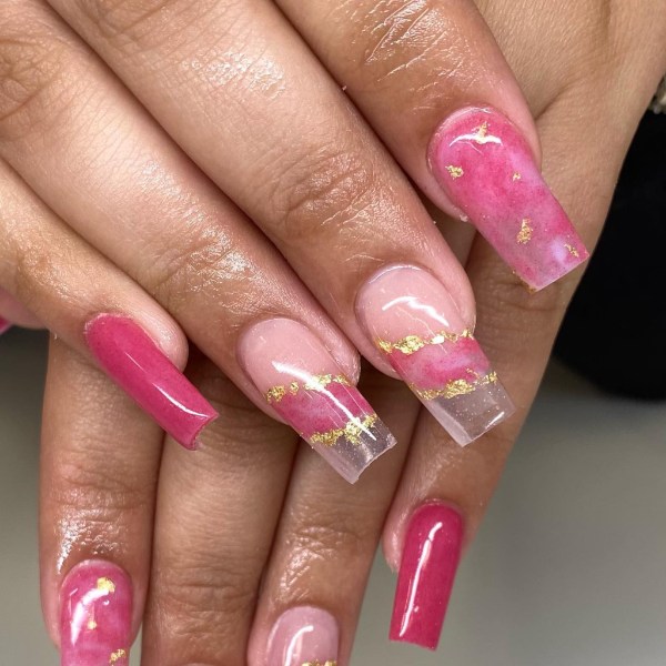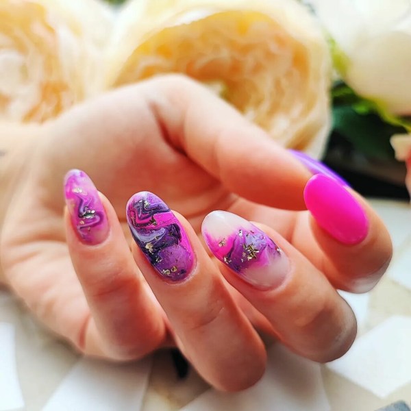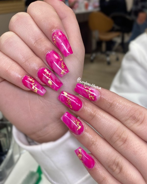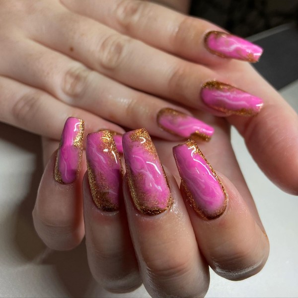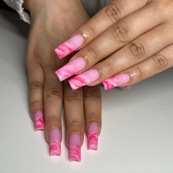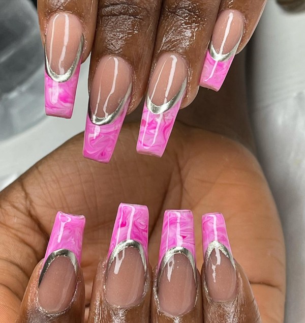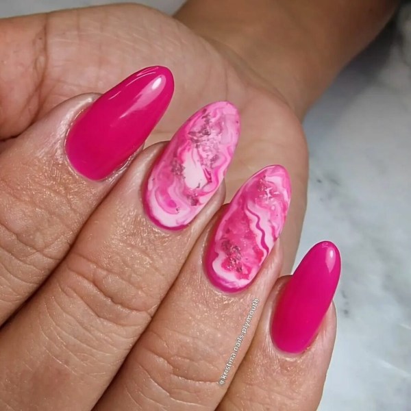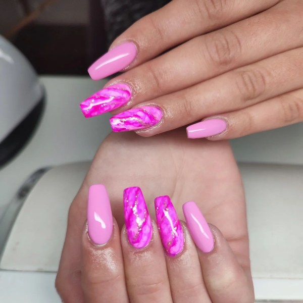 صورتی یکی از محبوبترین رنگها برای استفاده در طرح ناخنهای مرمری است، زیرا کنتراست کافی به ناخنهای شما میدهد تا جذاب به نظر برسید. حتی با کمی تمرین، میتوانید این مانیکور را در خانه نیز امتحان کنید و بقیه فکر کنند به تازگی ناخنهایتان را کاشتهاید.