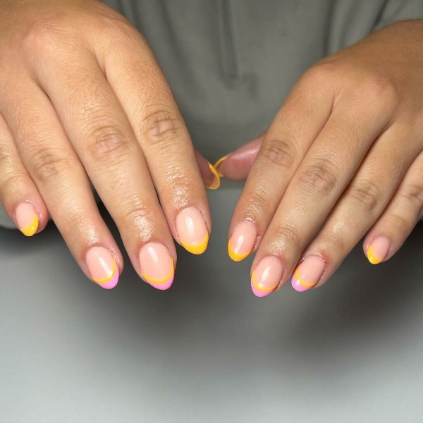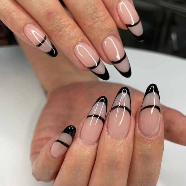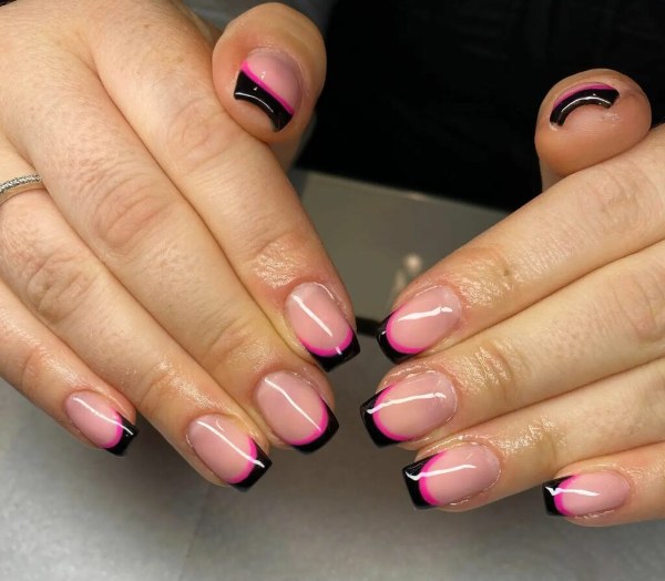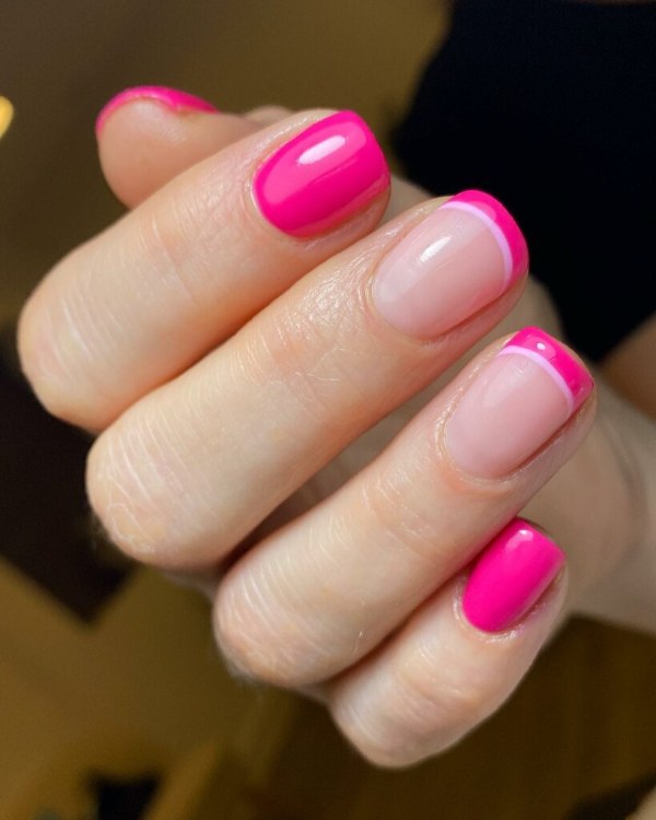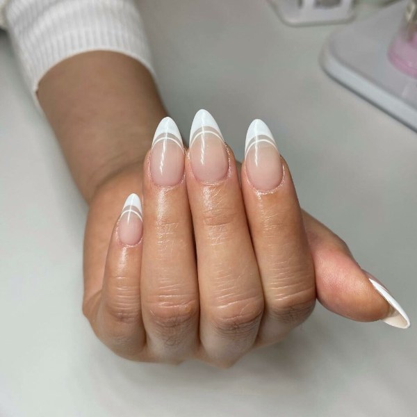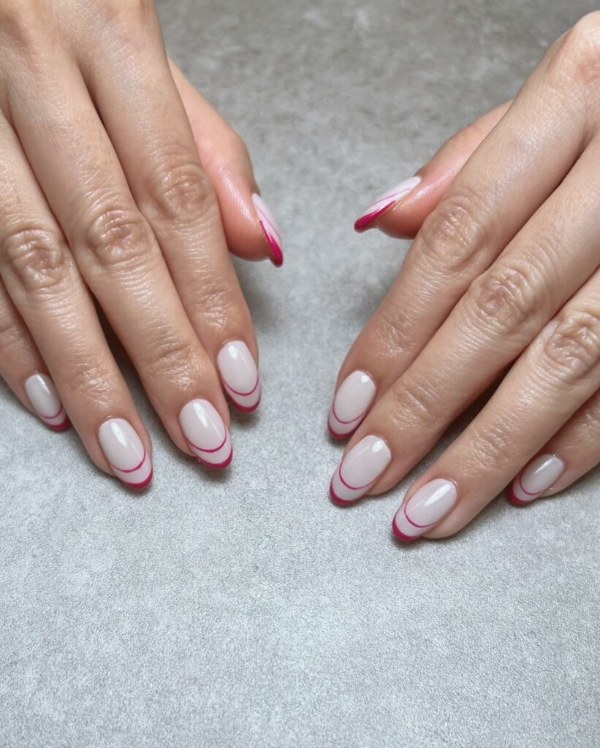 ناخن‌های دوتایی فرنچ می‌توانند به سادگی ایجاد یک خط لبخند فرانسوی روی ناخن شما و اضافه کردن یک خط نواری نازک در پشت آن باشند که زیباتر و جذاب‌تر دیده شوند.