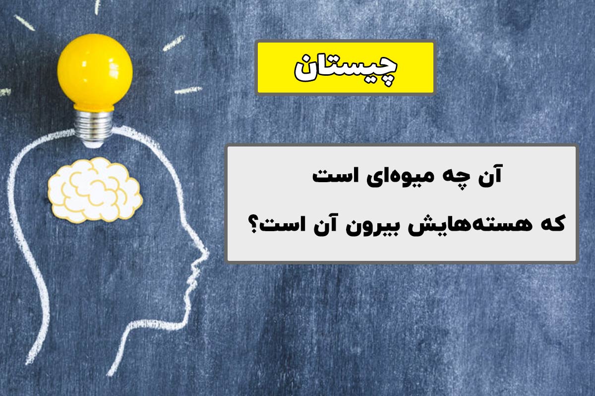 مجددا سوال چیستان را بخوانید و همه میوهها را در ذهن خود مرور نمایید. هسته میوهها معمولا در درون آنها قرار گرفتهاند اما این میوه خاص هستهاش بیرون آن است.