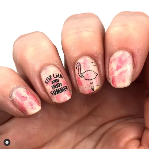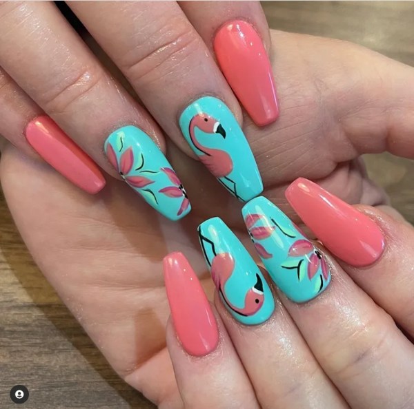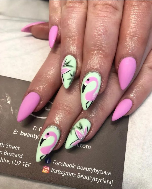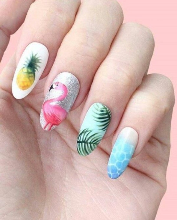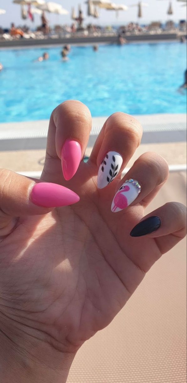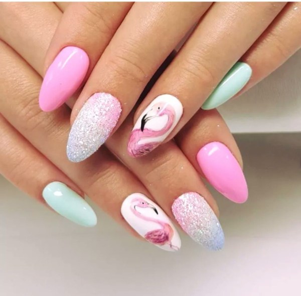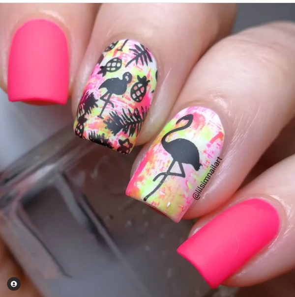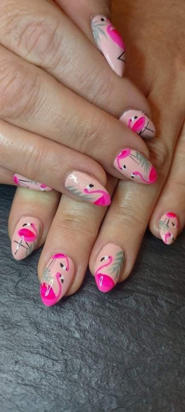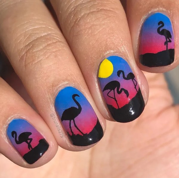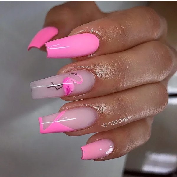 ناخنهای فلامینگویی به خوبی یادآور غروب تابستانی لب دریا هستند و برای تابستان چه انتخابی بهتر از این طرح ناخن؟