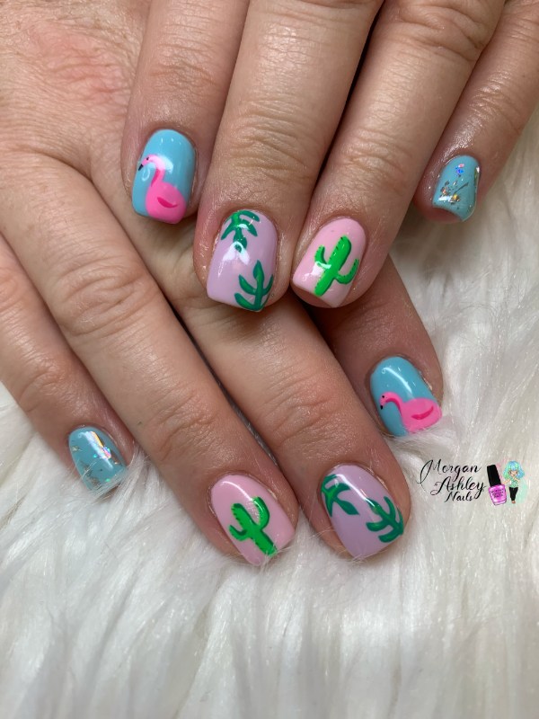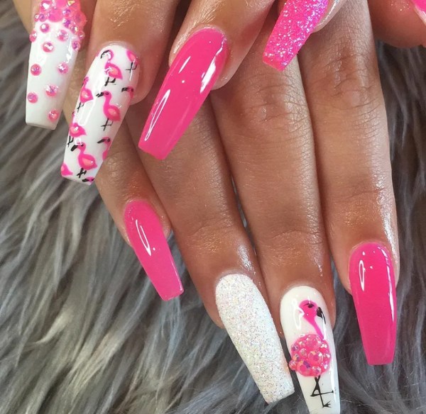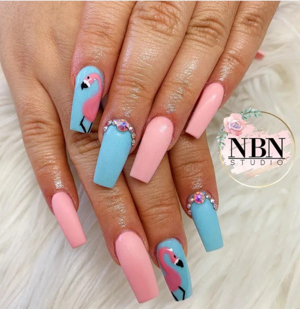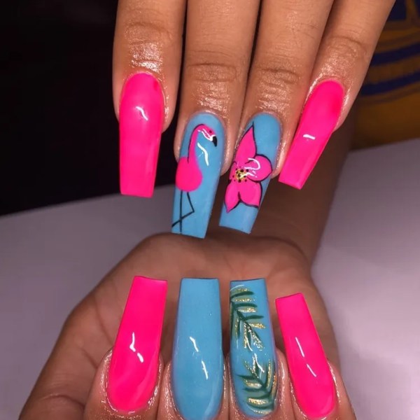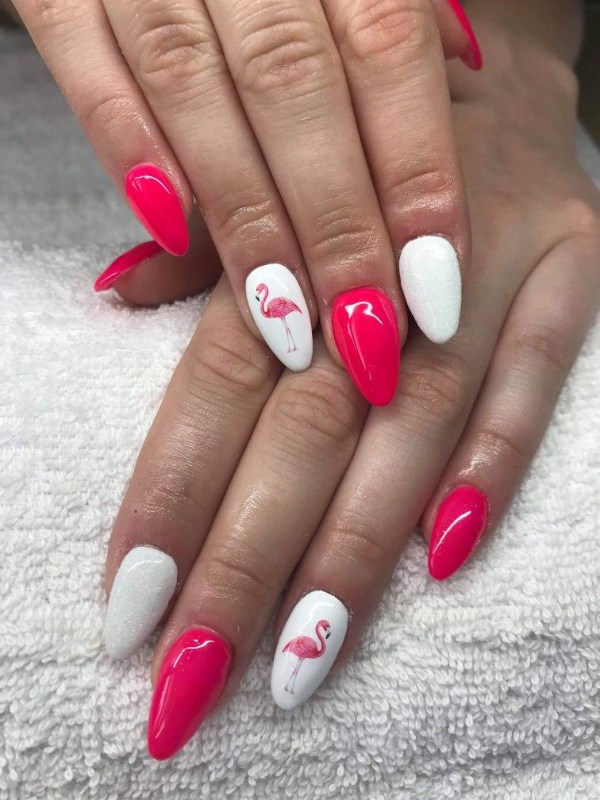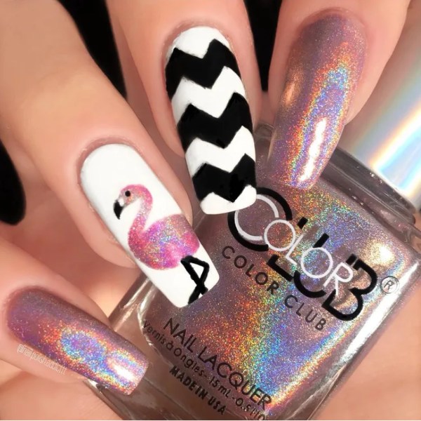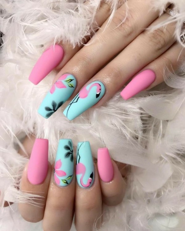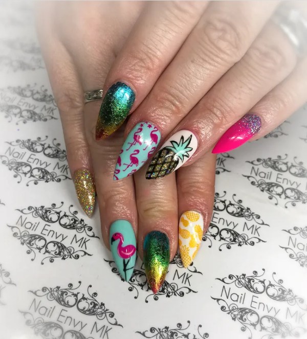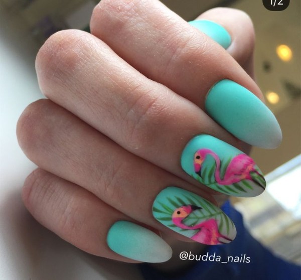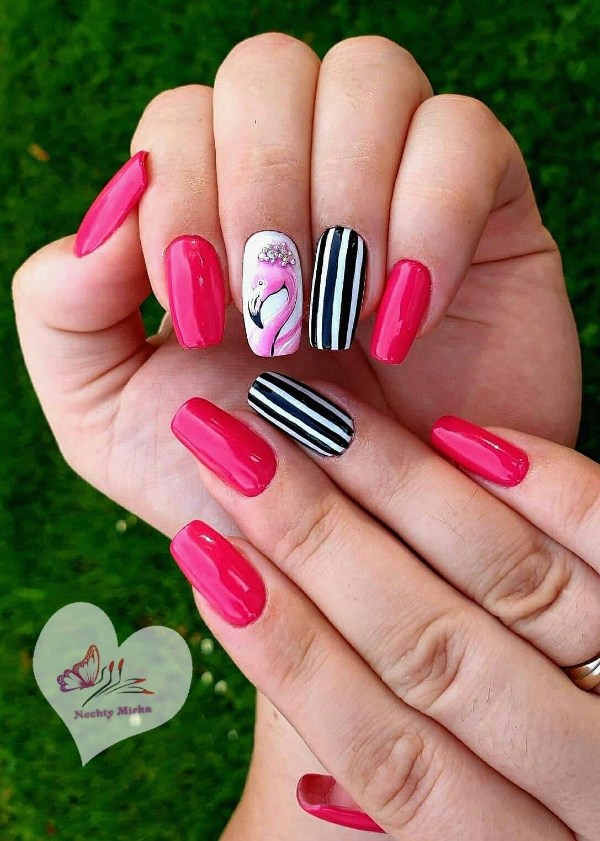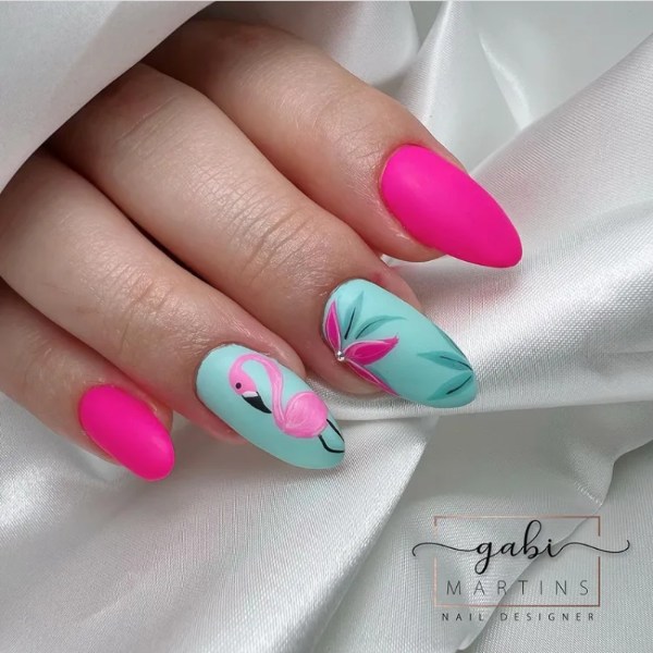 ناخنهای فلامینگویی به خوبی یادآور غروب تابستانی لب دریا هستند و برای تابستان چه انتخابی بهتر از این طرح ناخن؟