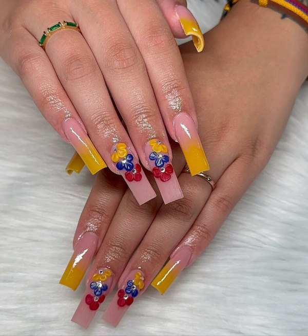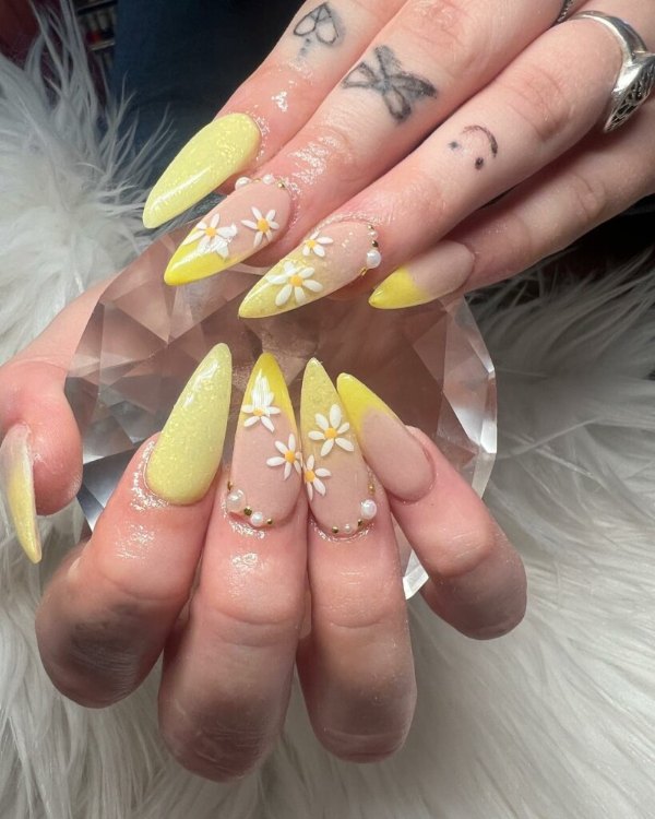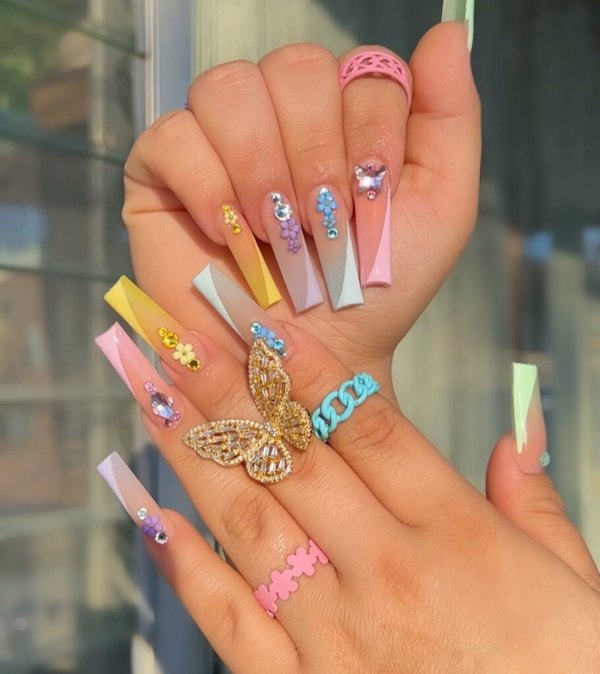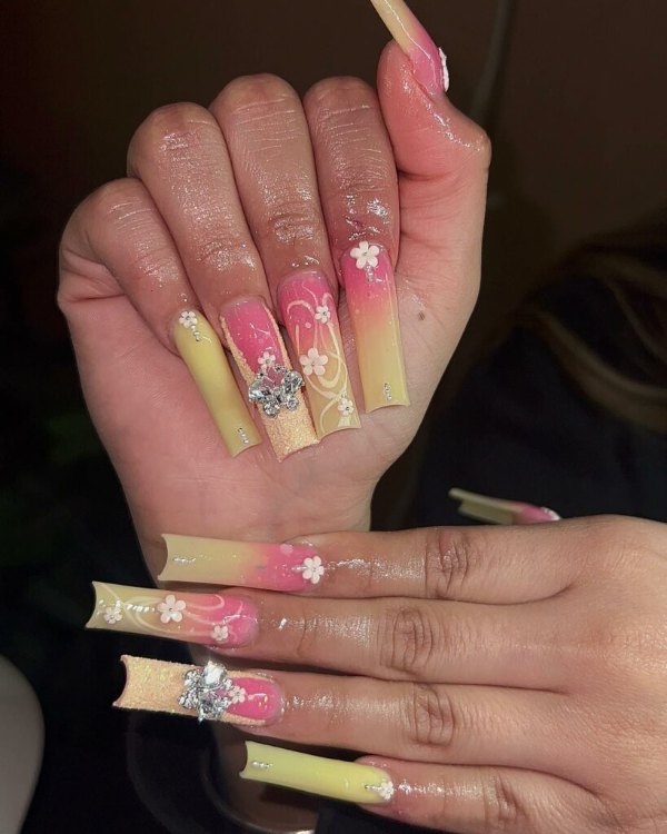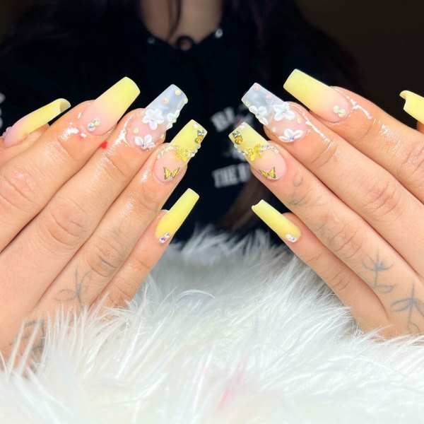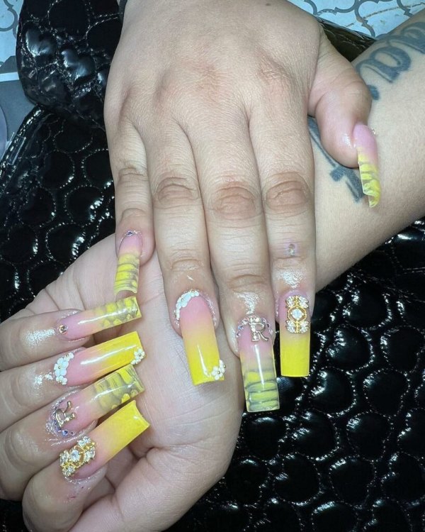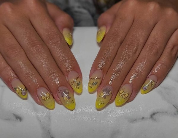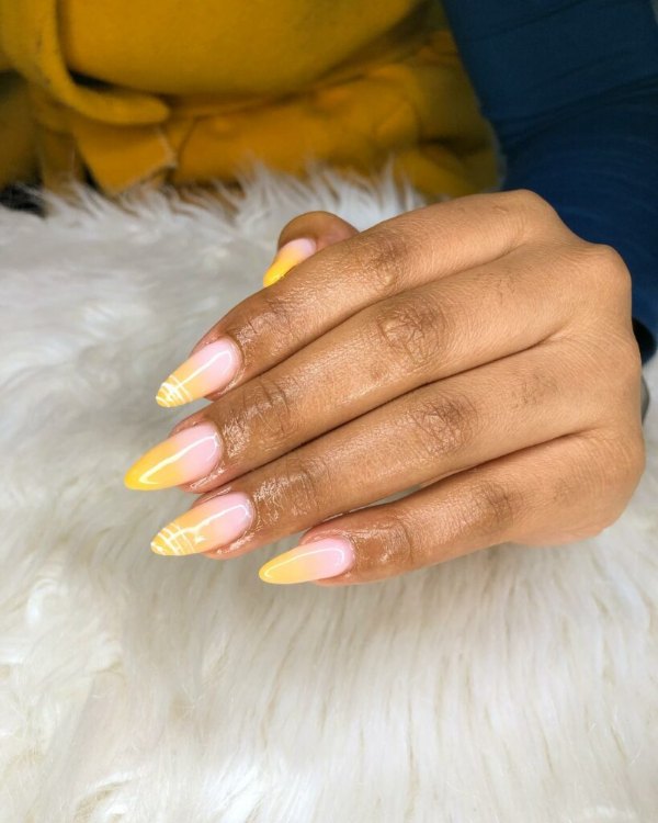 ناخنهای آمبره زرد رنگ، در ترکیب با سایر رنگها از ترندهای تابستان امسال هستند.