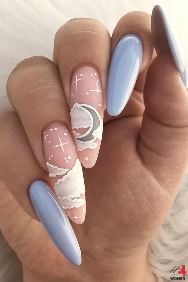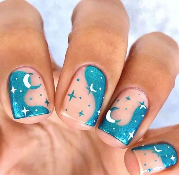 ۳۵ ایده طراحی ناخن با طرح ماه زنانه و دخترانه | ماه را در دست بگیرید
