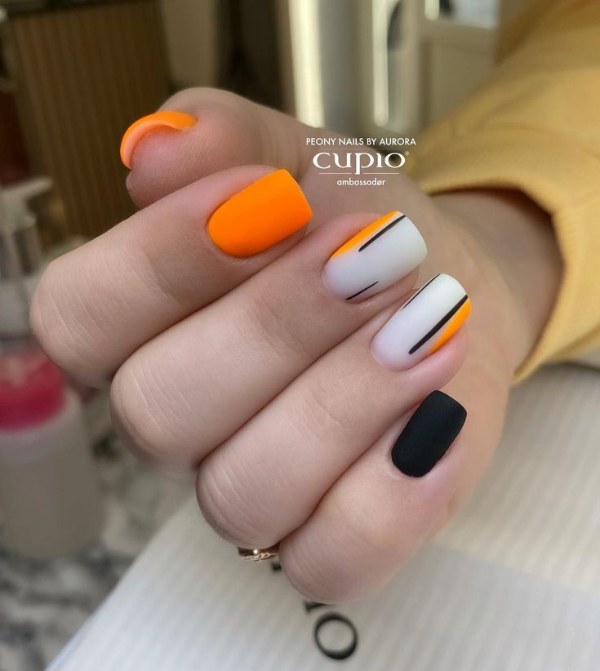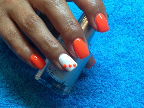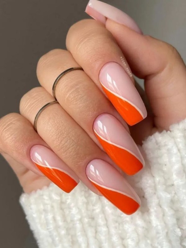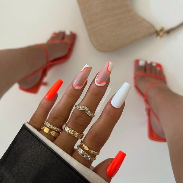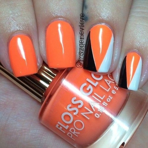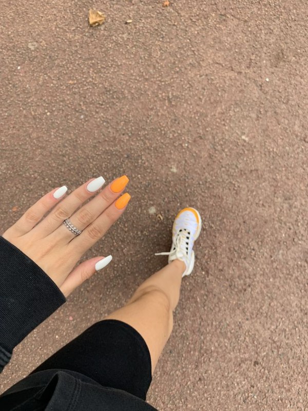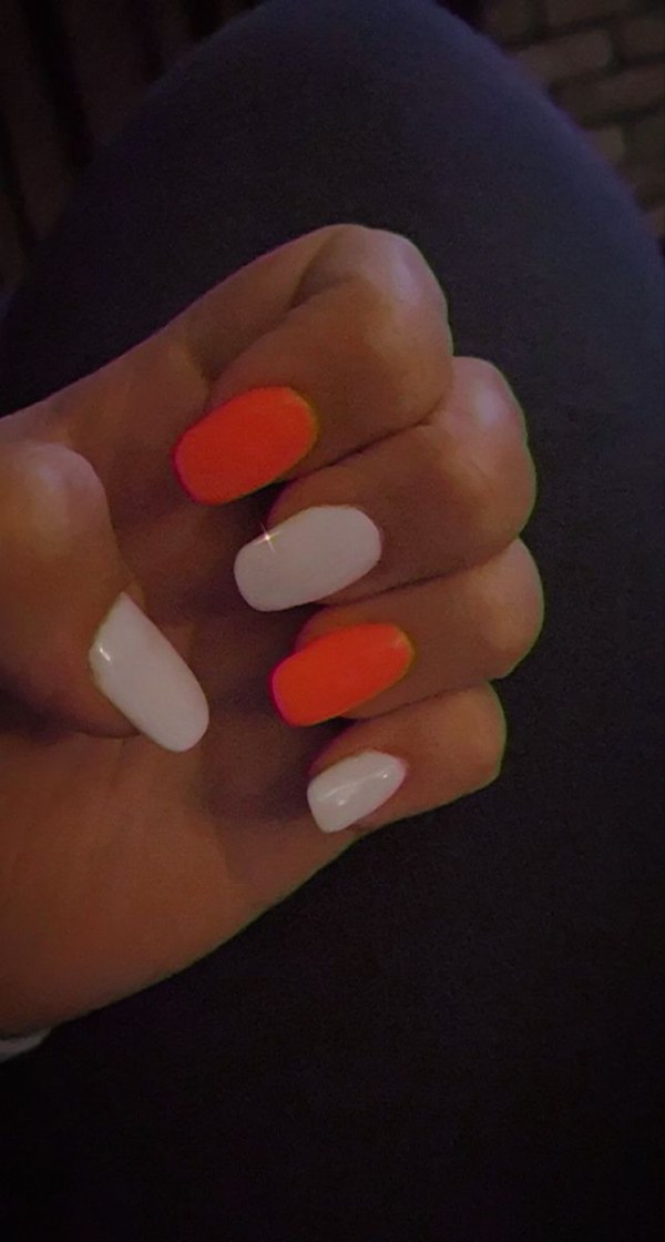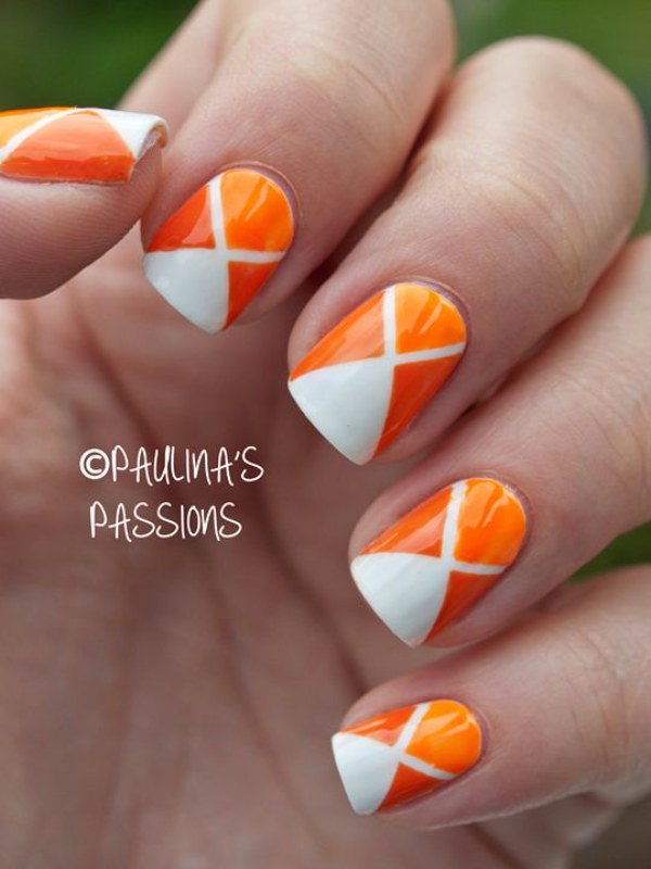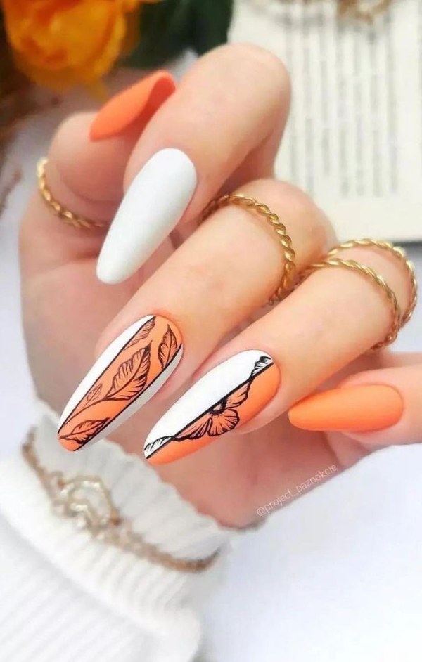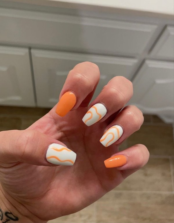 مدل طراحی ناخن با دو رنگ نارنجی و سفید