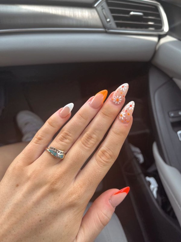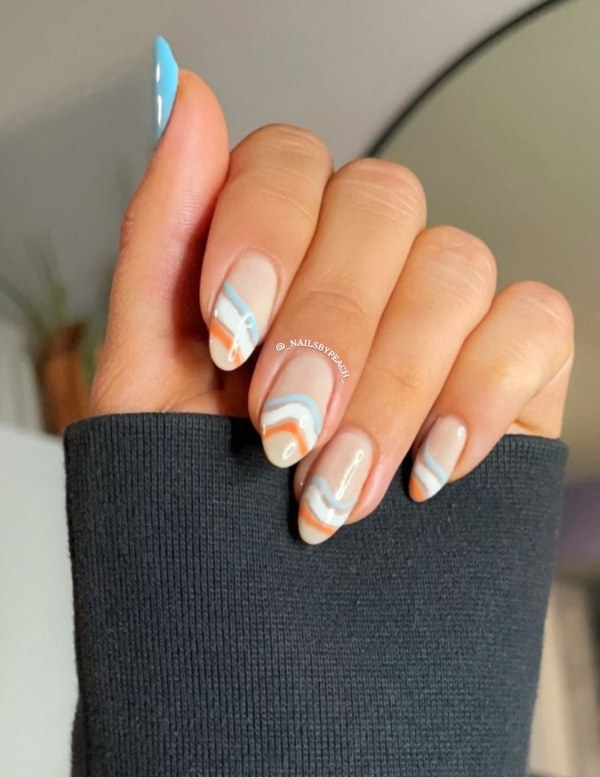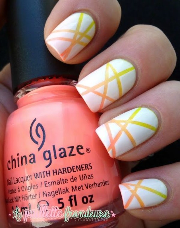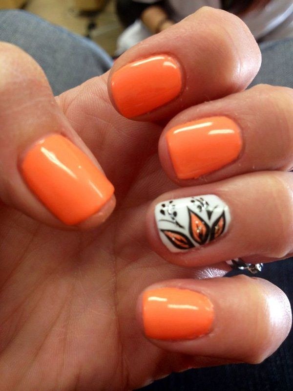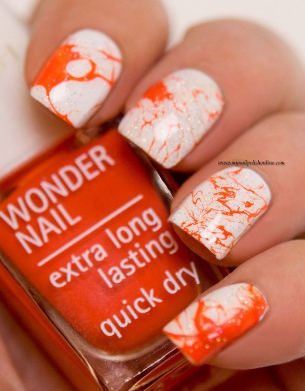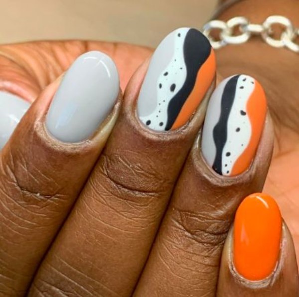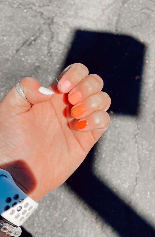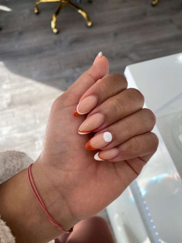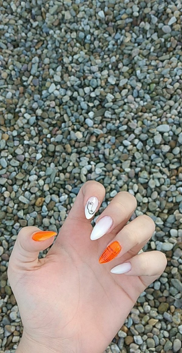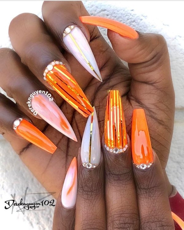مدل طراحی ناخن با دو رنگ نارنجی و سفید