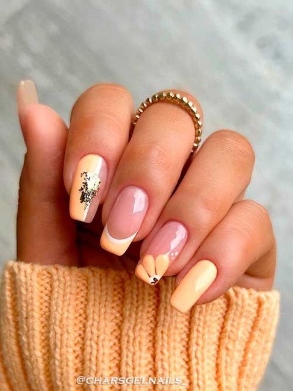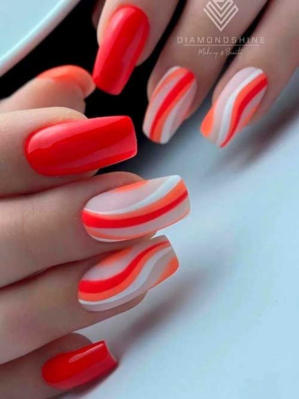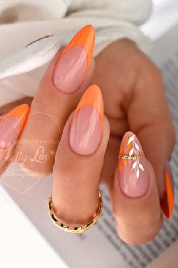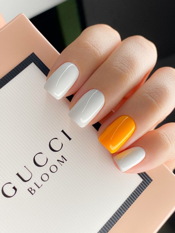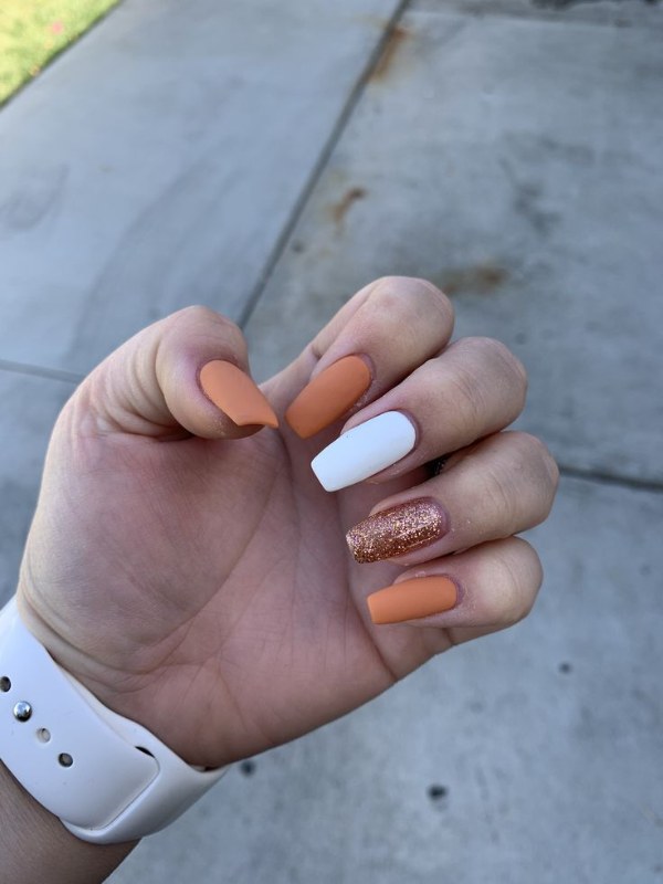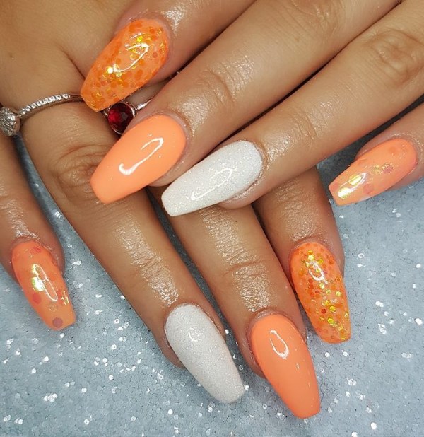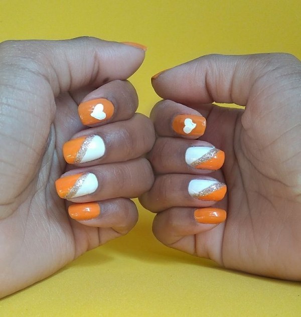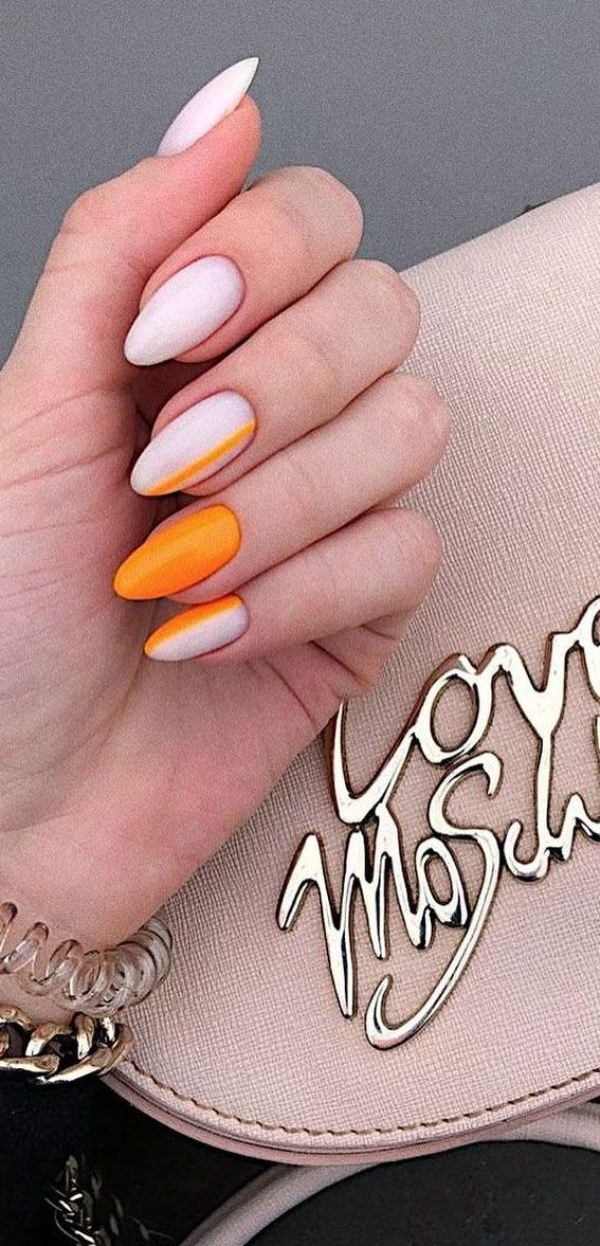 اگر میخواهید دستانی جذاب و درخشان داشته باشید، طرح ناخن با استفاده از دو رنگ نارنجی و سفید پیشنهاد ما به شماست.