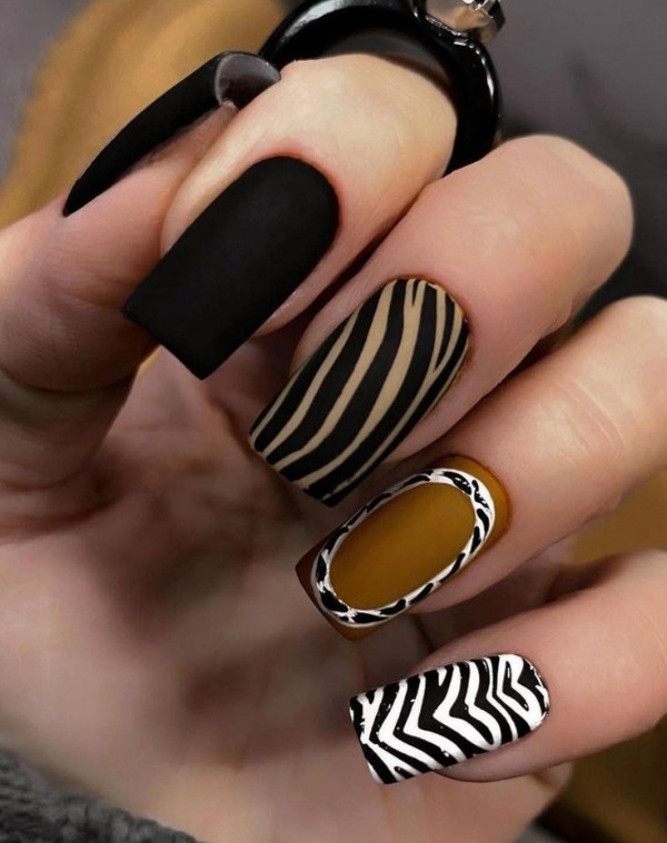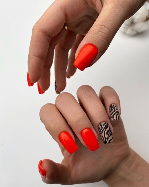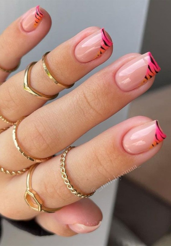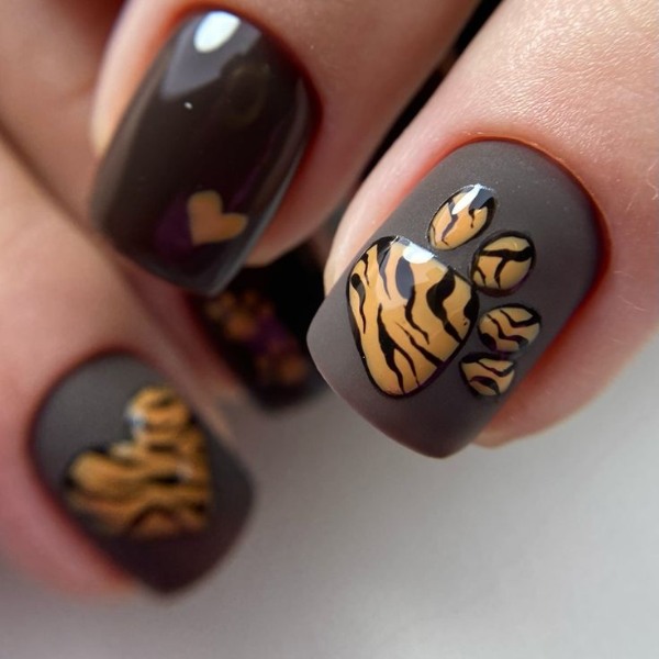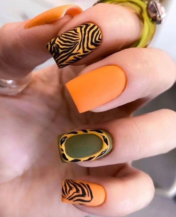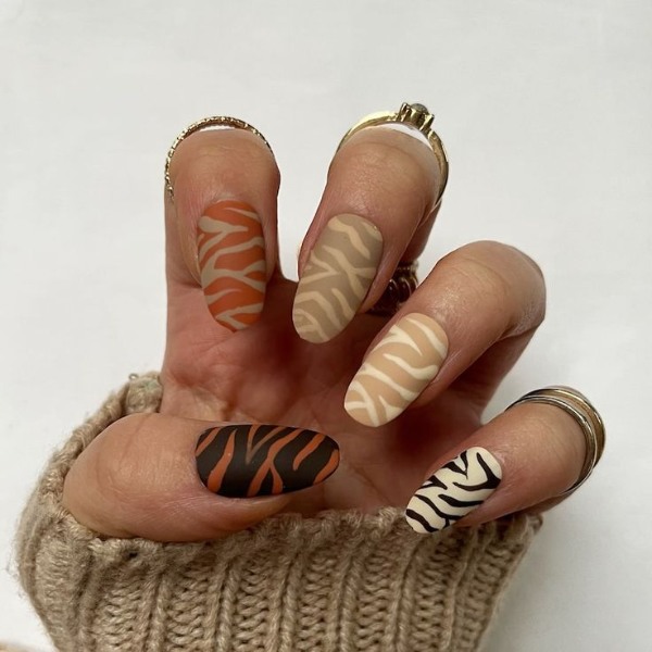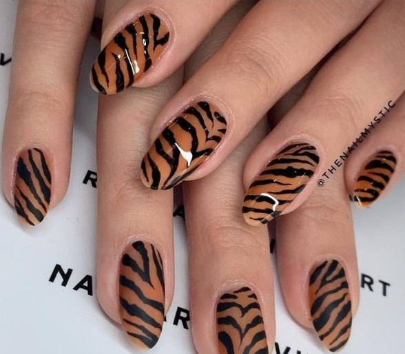 ۳۵ ایده جذاب و جدید طراحی ناخن ببری ۱۴۰۲ | ایده ناخن پاییزی