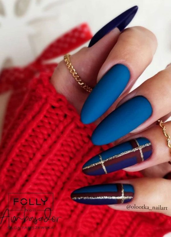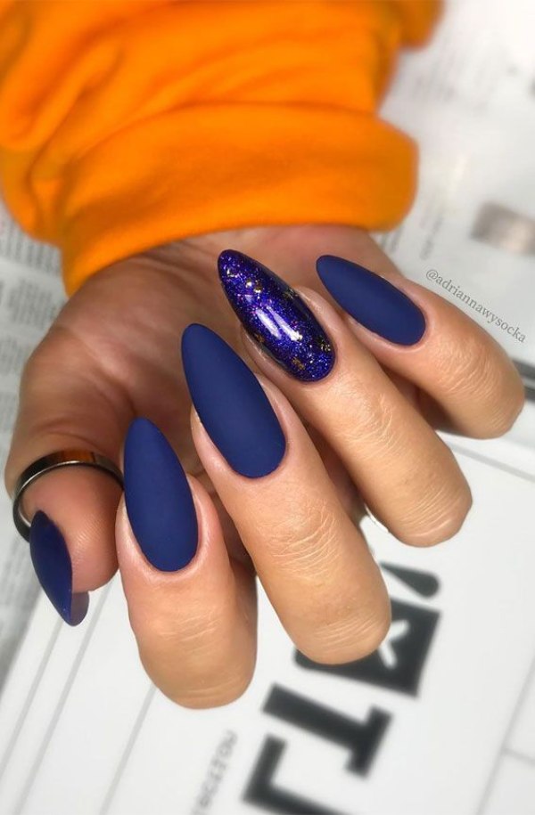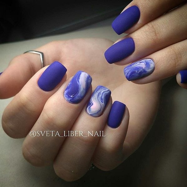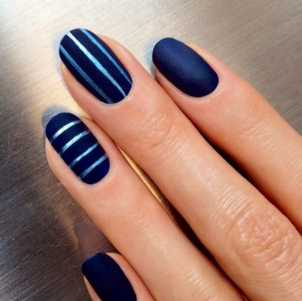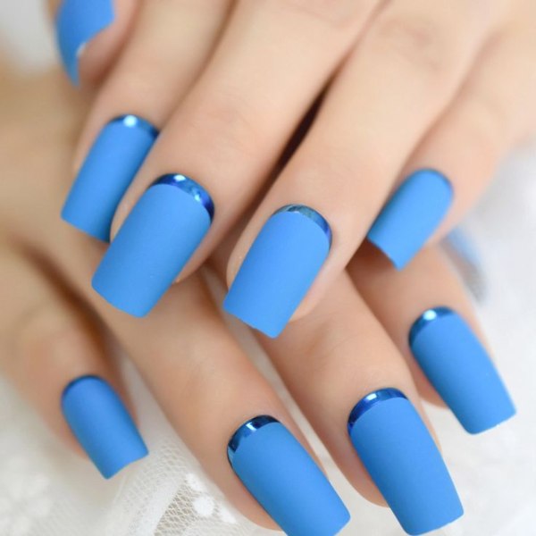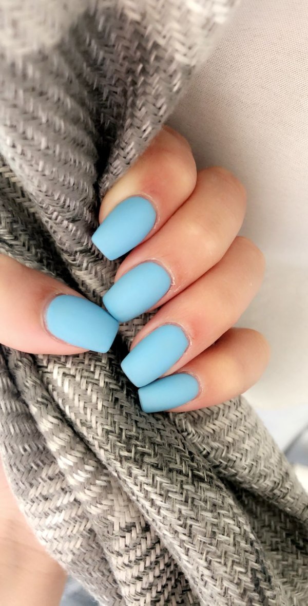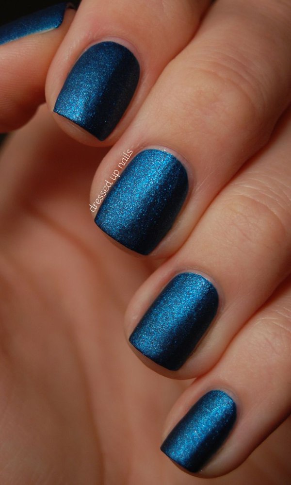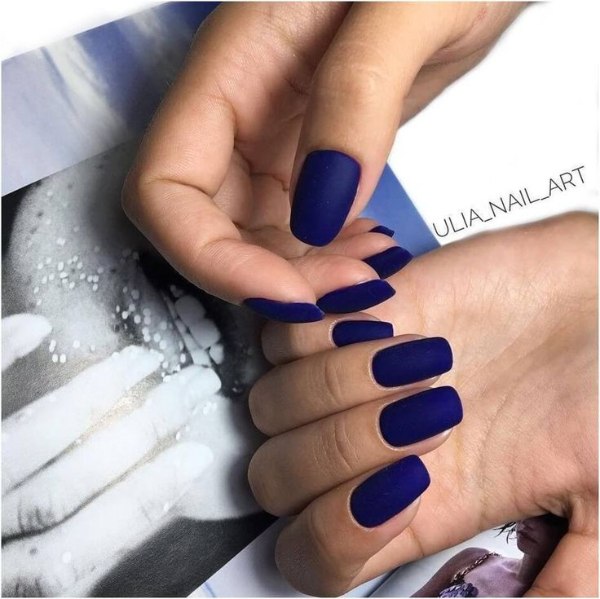 اگر از طرفداران رنگ آبی هستید، پیشنهاد نخست ما به شما استفاده از لاک آبی مات است که جلوه و زیبایی بسیار خاصی دارد.