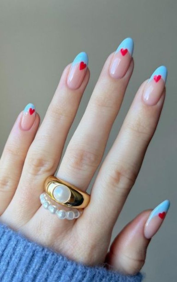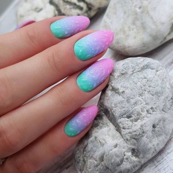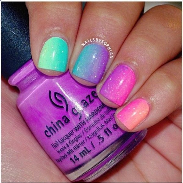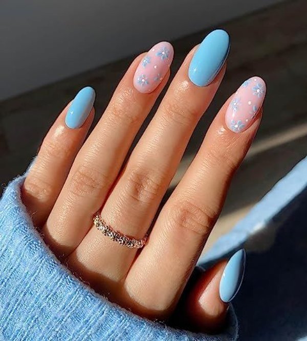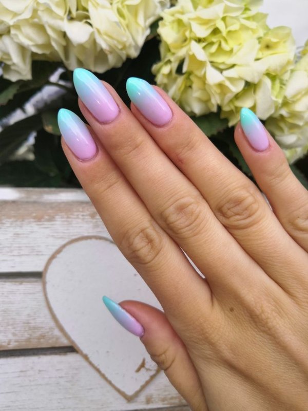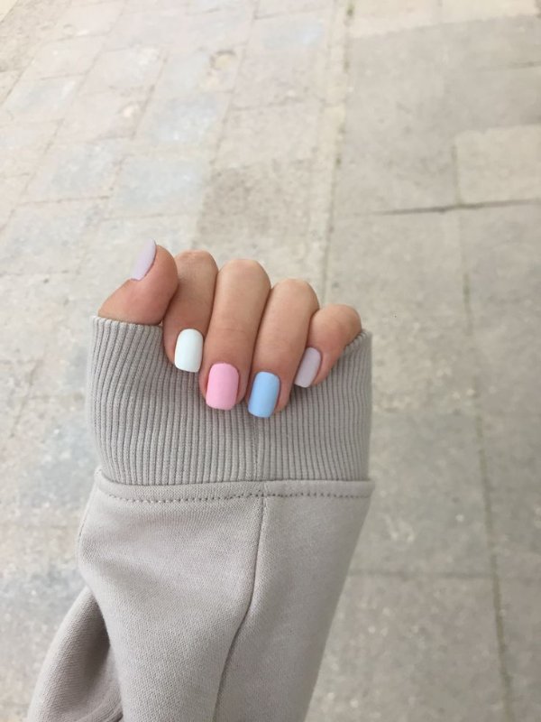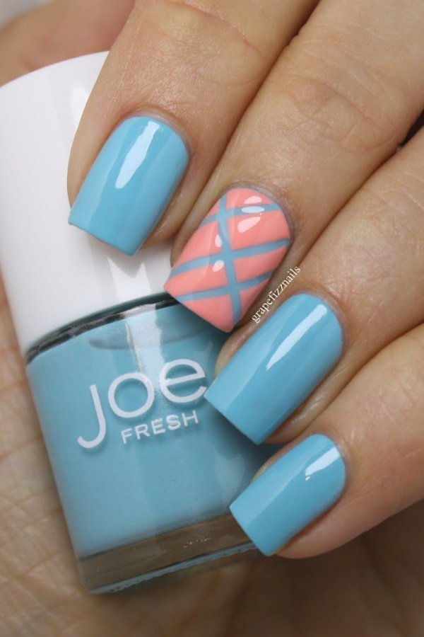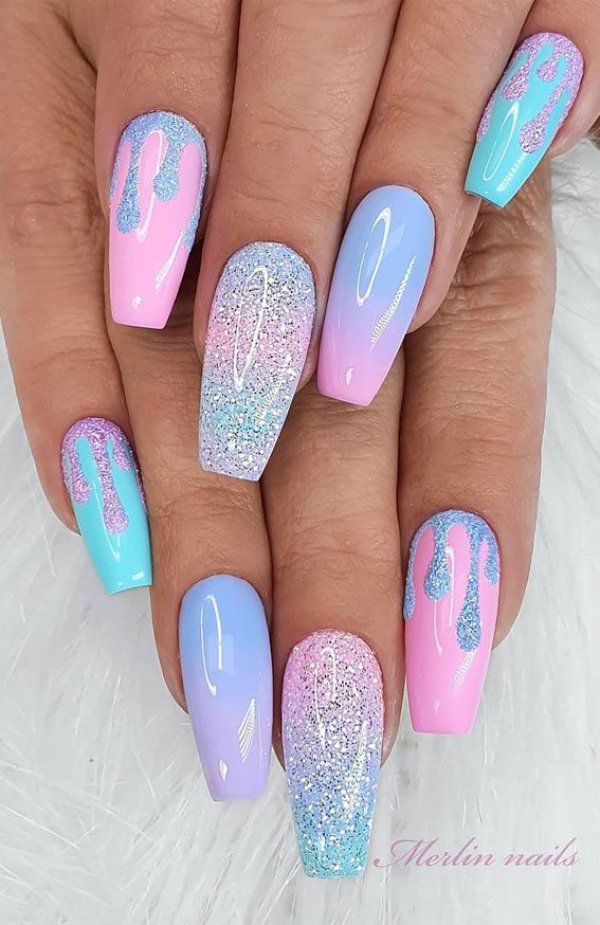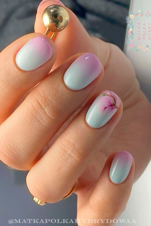 دو رنگ آبی و صورتی در ترکیب با هم حسی تمیزی، رویا، لطافت و معصومیت القا میکنند و به خصوص برای دختران نوجوان انتخابی عالی برای طرح روی ناخن هستند.