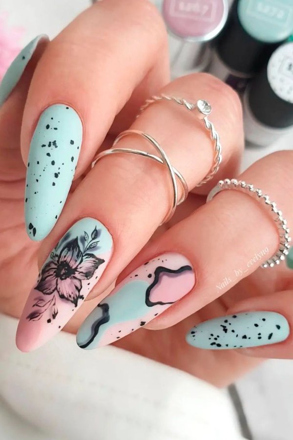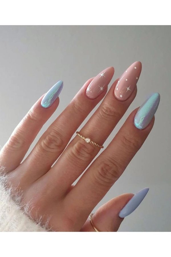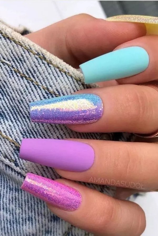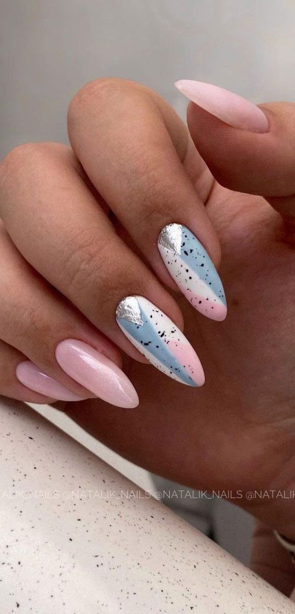 آبی و صورتی همیشه یک ترکیب برنده بین رنگها بودهاند و این زیبایی در دنیای ناخن هم کاملا مشهود است.