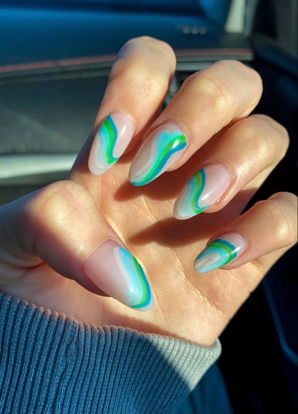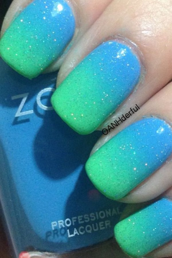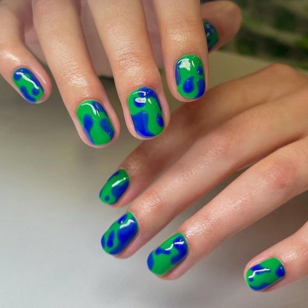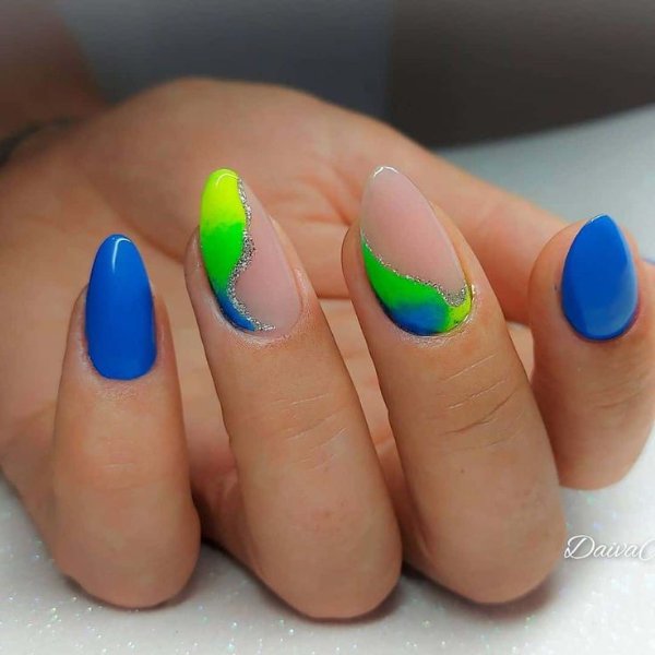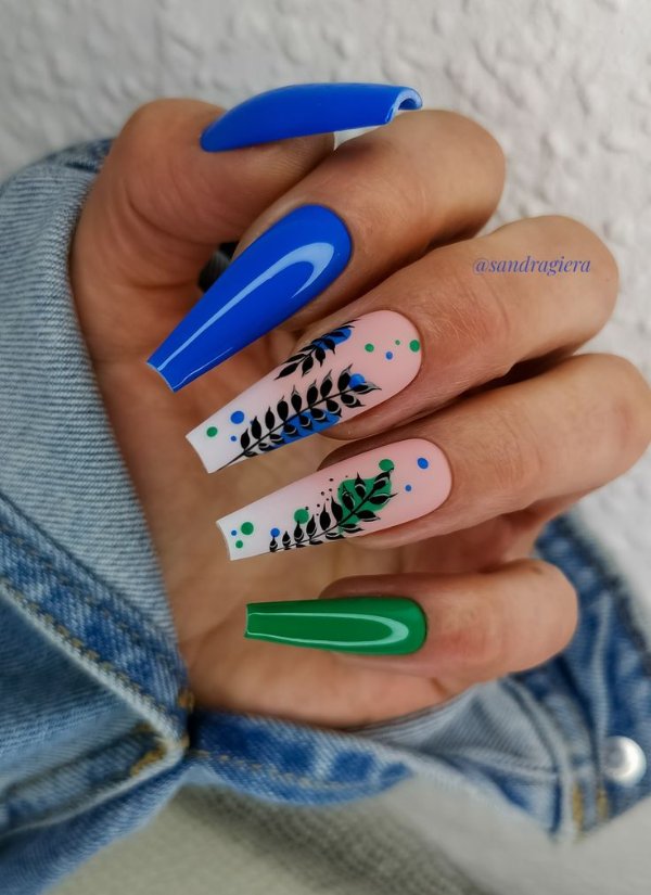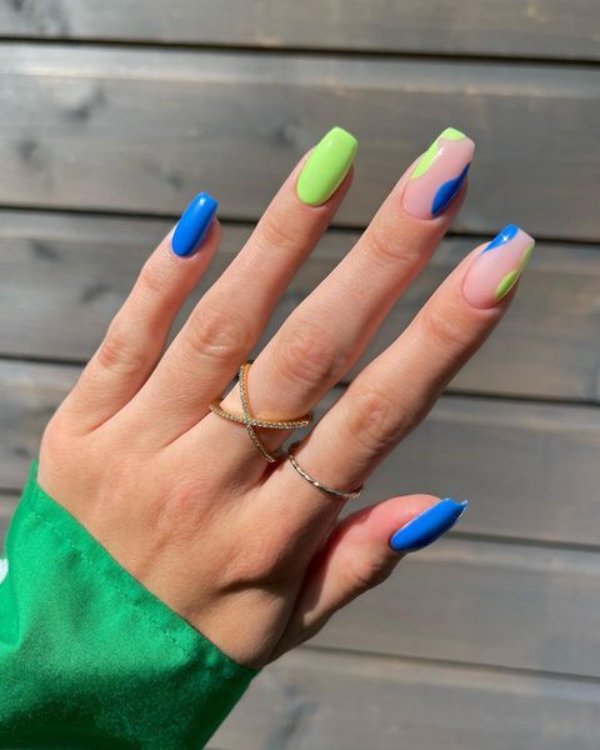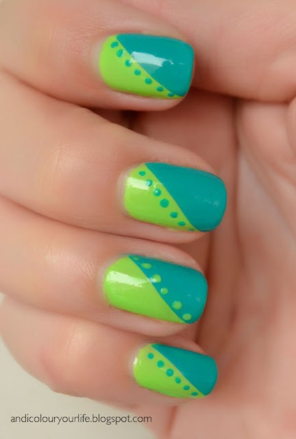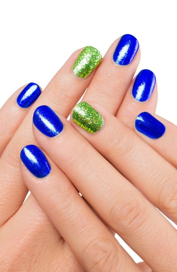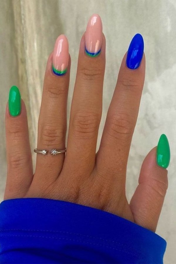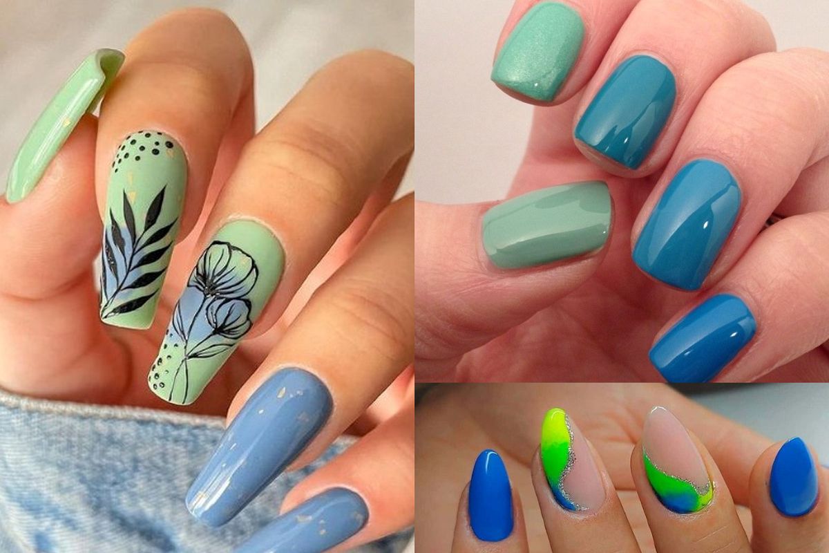 طرح ناخن با ترکیب رنگ آبی و سبز