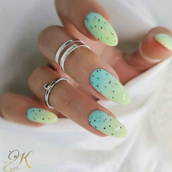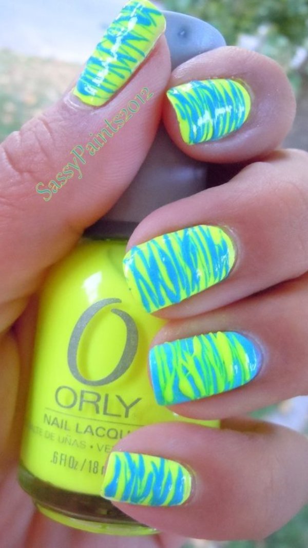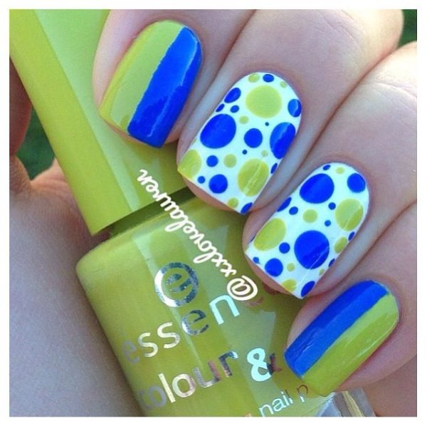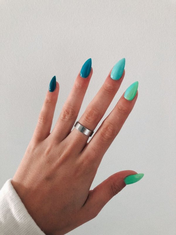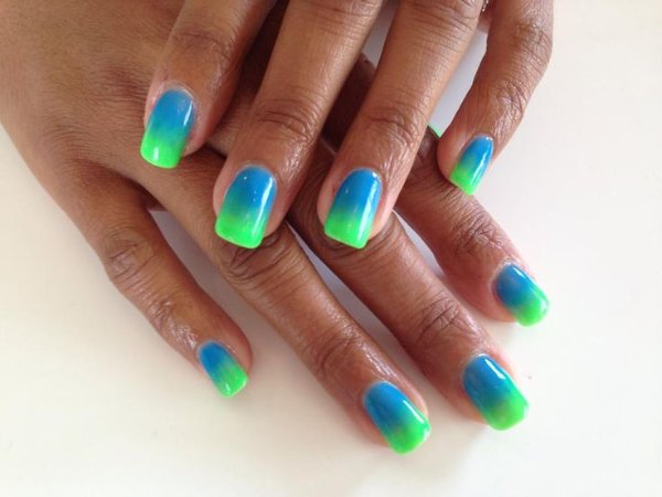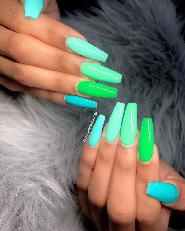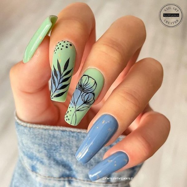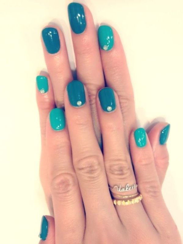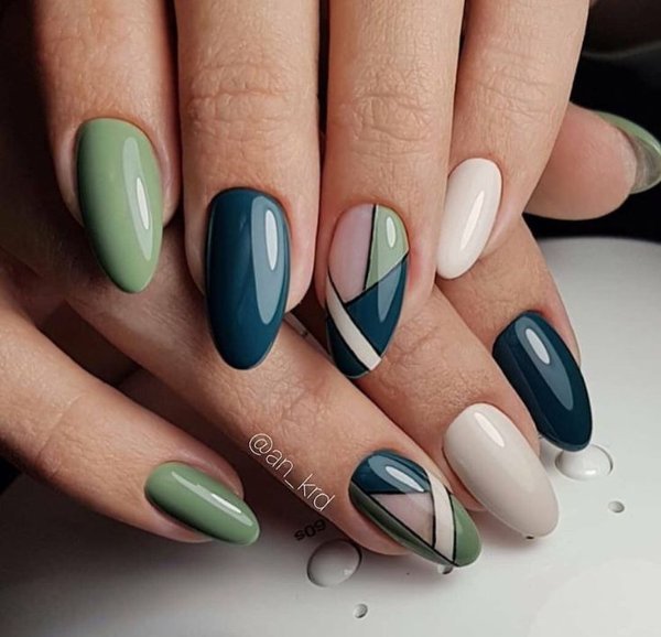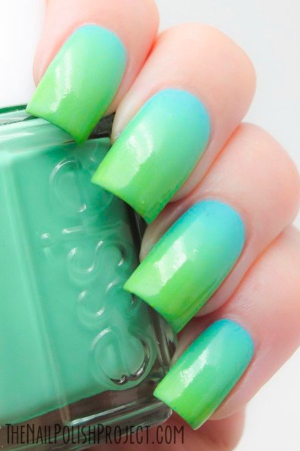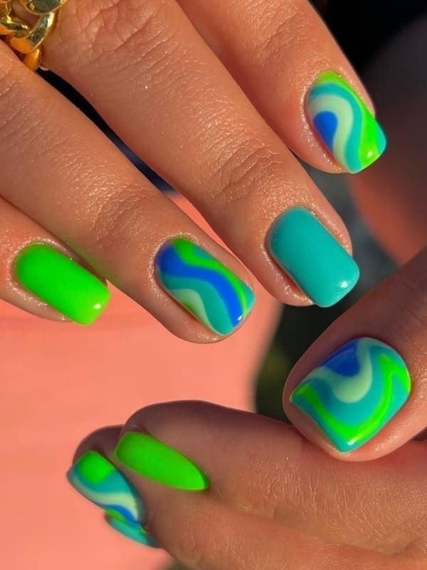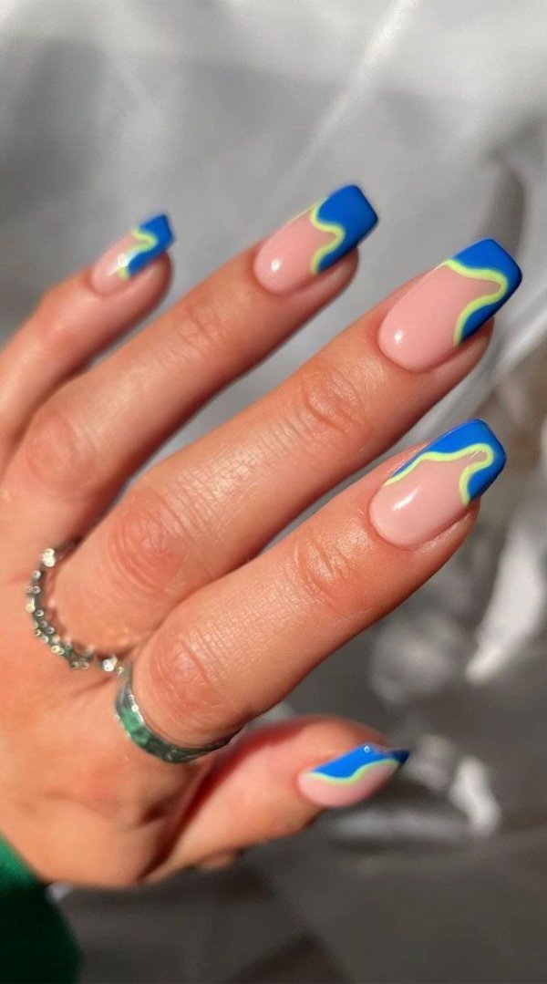 طرح ناخن با ترکیب رنگ آبی و سبز