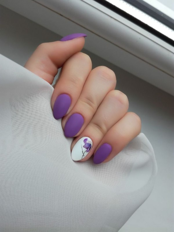 رنگ دلنشین و زیبای بنفش در ترکیب با گلهای بسیار زیبا این سبک ناخنها را بسیار جذاب و دوست داشتنی میکنند.
