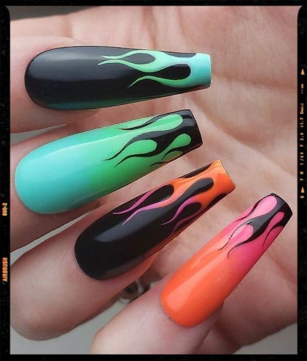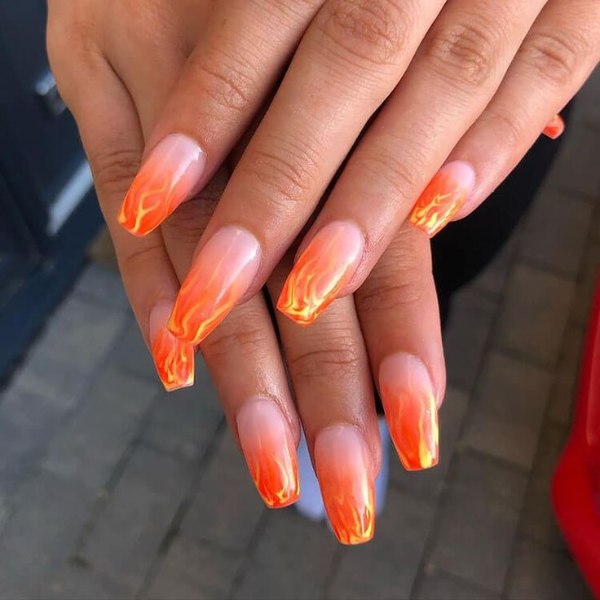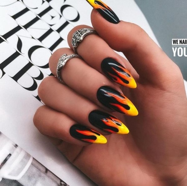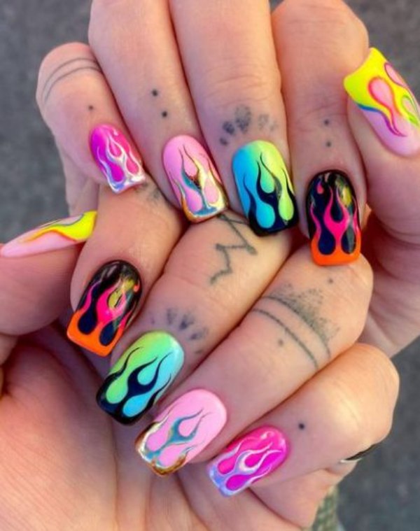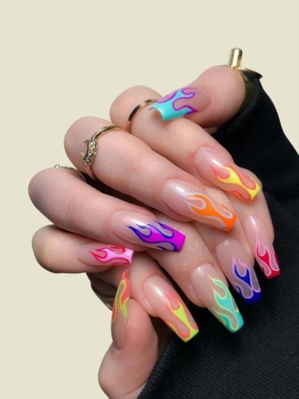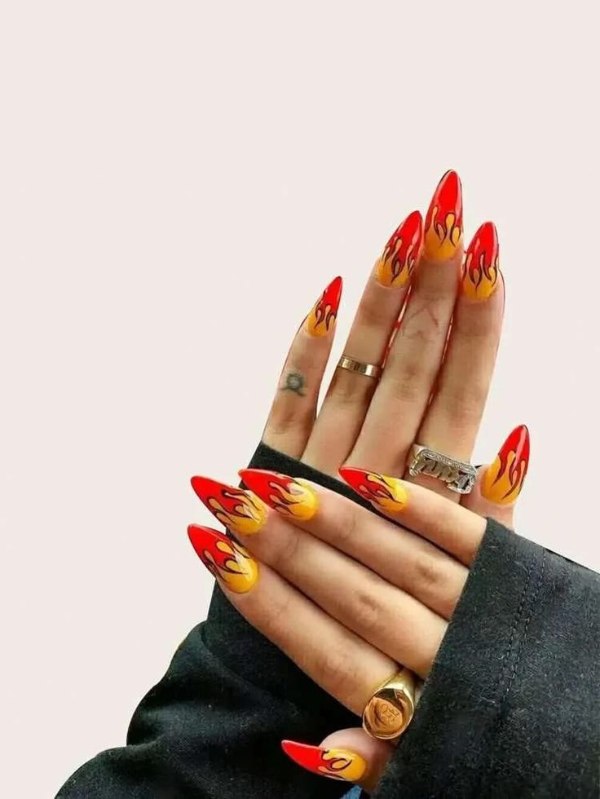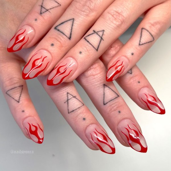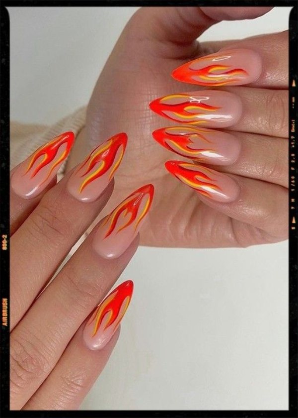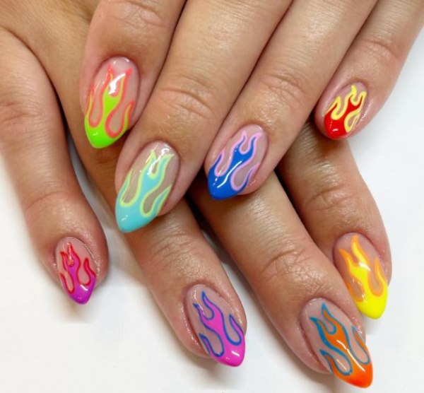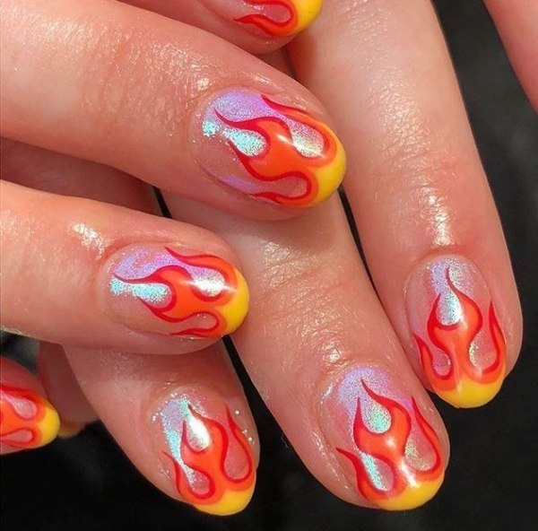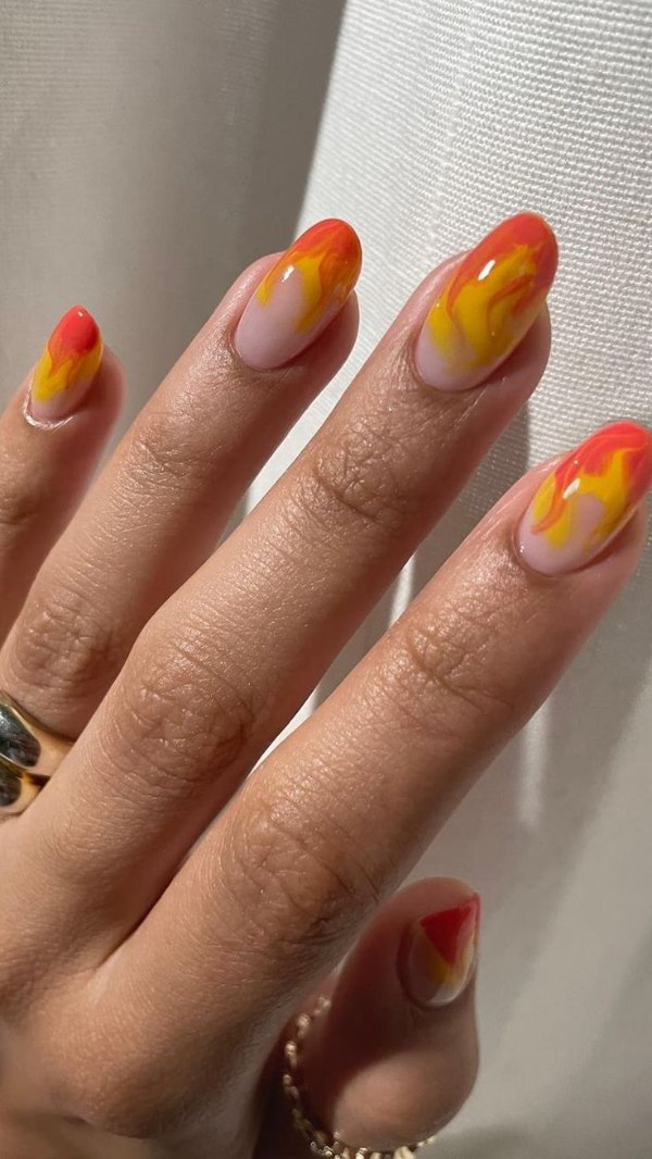 ۴۵ طرح ناخن آتشین مناسب پاییز ۱۴۰۲ | شعله‌هایی رنگارنگ روی ناخن خود طرح بزنید