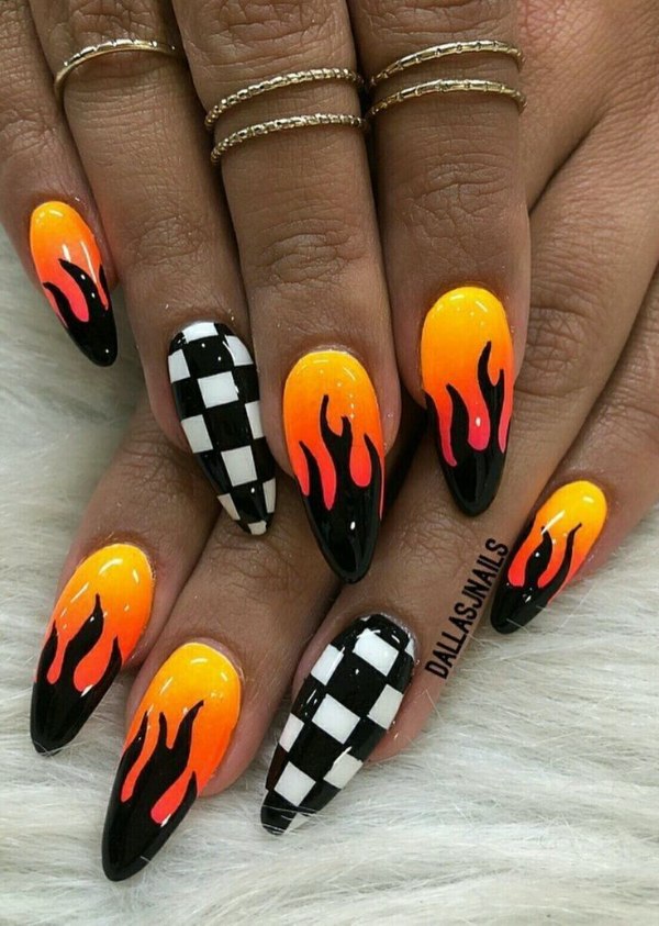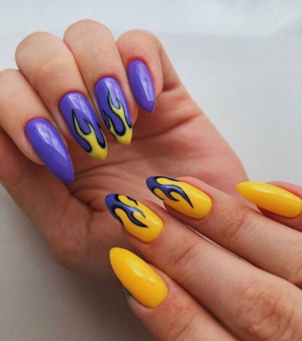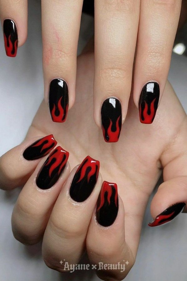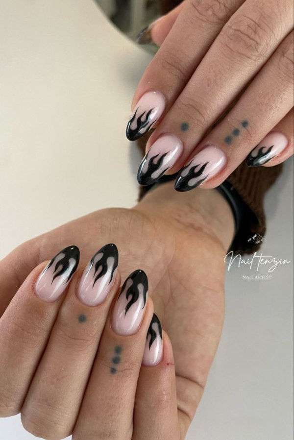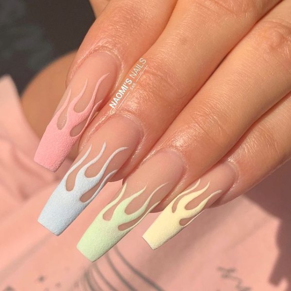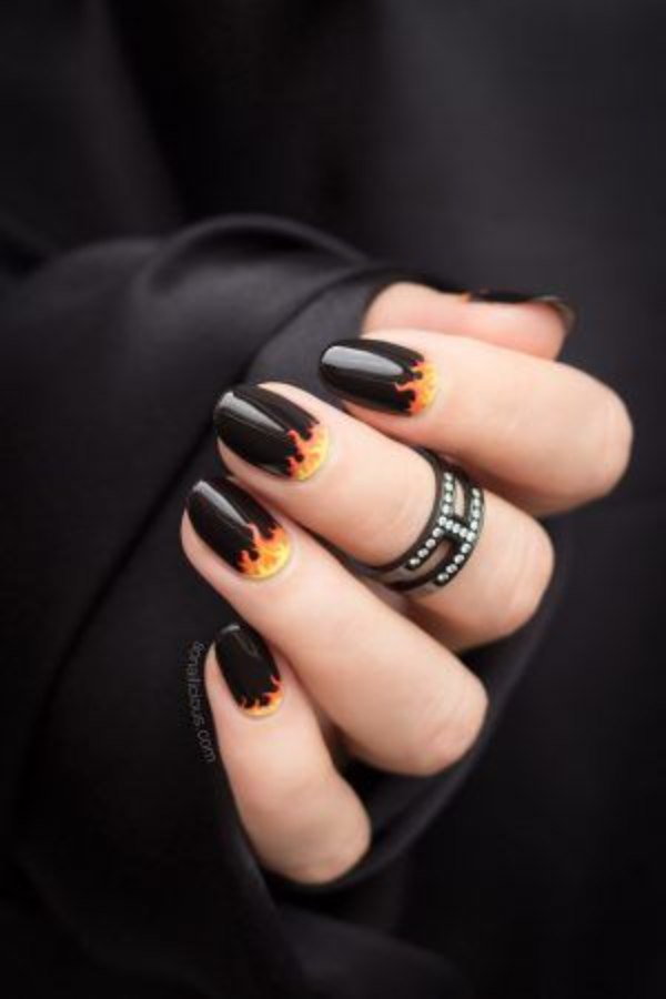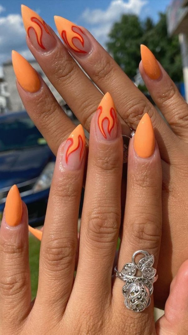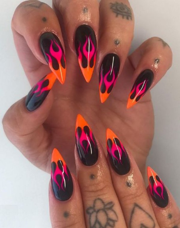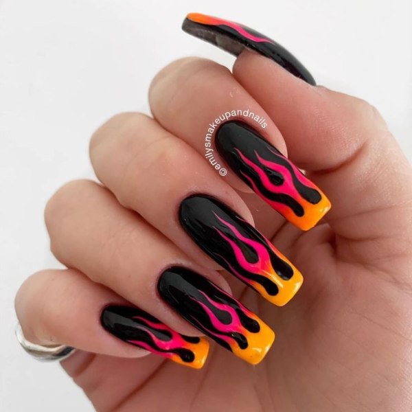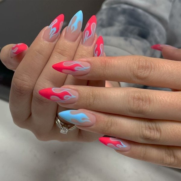۴۵ طرح ناخن آتشین مناسب پاییز ۱۴۰۲ | شعله‌هایی رنگارنگ روی ناخن خود طرح بزنید