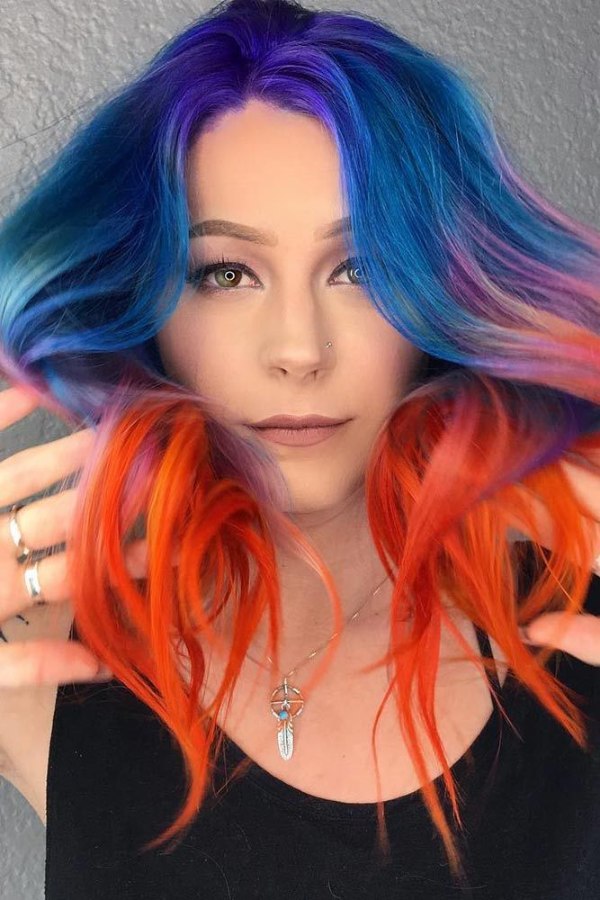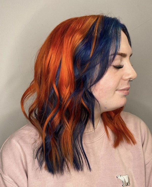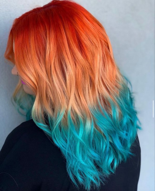اگر از طرفداران رنگ فانتزی مو هستید و دنبال طرحی تازه میگردید که کمتر کسی استفاده کردهباشد، رنگ موی آبی و نارنجی برای شماست.
