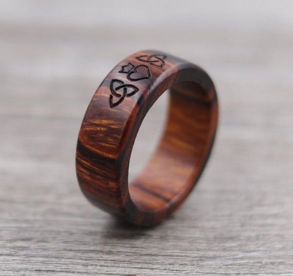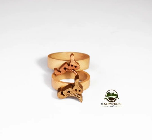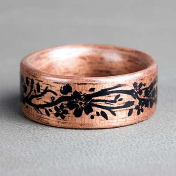 - انگشترهای چوبی حکاکی شده: این انگشترها دارای طرح های حکاکی شده هستند که می تواند شامل الگوهای سنتی، نمادها یا عبارات باشد. آنها معمولاً از چوب های سخت مانند گردو، بلوط یا افرا ساخته می شوند.