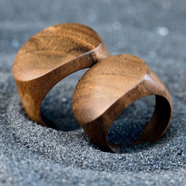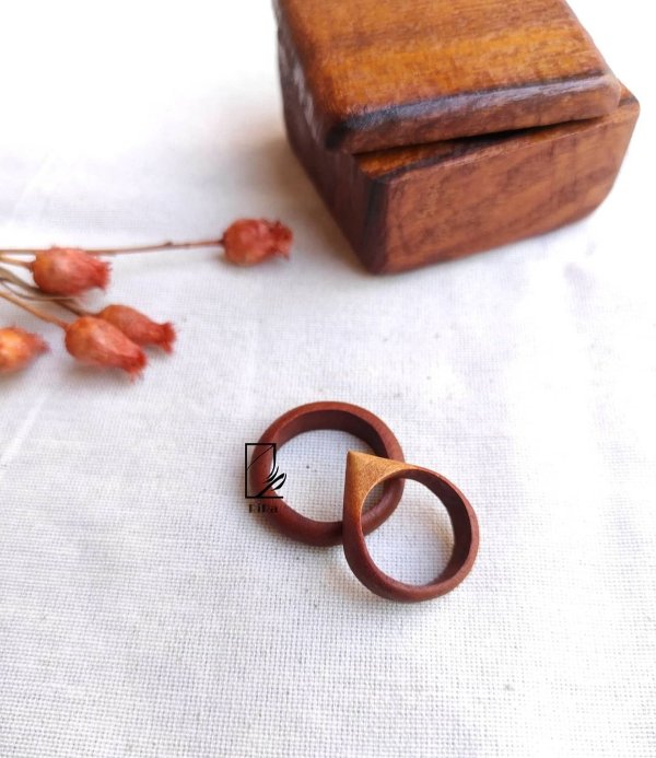 - انگشترهای چوبی ساده: این انگشترها دارای طرح ساده ای هستند و از یک تکه چوب ساخته شده اند. آنها معمولاً دارای لبه های صاف یا گرد هستند.