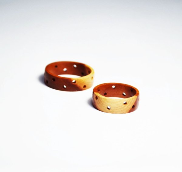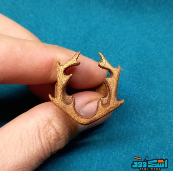 - انگشترهای چوبی کنده کاری شده: این انگشترها دارای طرح های کنده کاری شده هستند که می تواند شامل الگوهای پیچیده یا تصاویر باشد. آنها معمولاً از چوب های نرم مانند چنار یا توس ساخته می شوند.