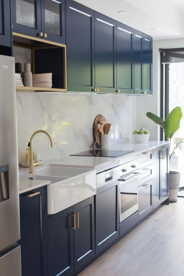 ۵۰ مدل کابینت سورمه‌ای آشپزخانه | یک کلاسیک مدرن برای یک آشپزخانه شیک و زیبا