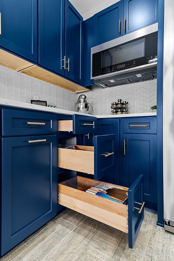 این کابینت‌های خوش‌رنگ و مدرن می‌توانند از روشن‌تر تا تیره‌تر متغیر باشند و با طیف وسیعی از سبک‌های آشپزخانه، از ساحلی گرفته تا سنتی یا مدرن، کاملاً هماهنگی دارند و زیبایی خاص و چشمگیری به آشپزخانه شما اضافه می‌کنند. اگر به فکر رنگ آمیزی برخی یا همه کابینت‌های آشپزخانه خود به رنگ آبی سرمه ای هستید، با ۵۰ مدل کابینت سورمه‌ای آشپزخانه در این مطلب همراه شما هستیم.