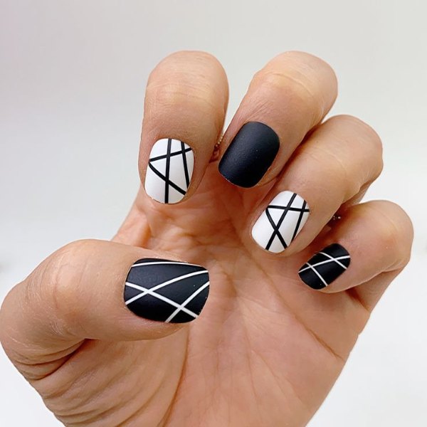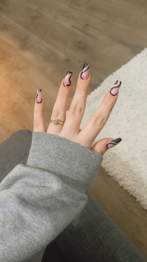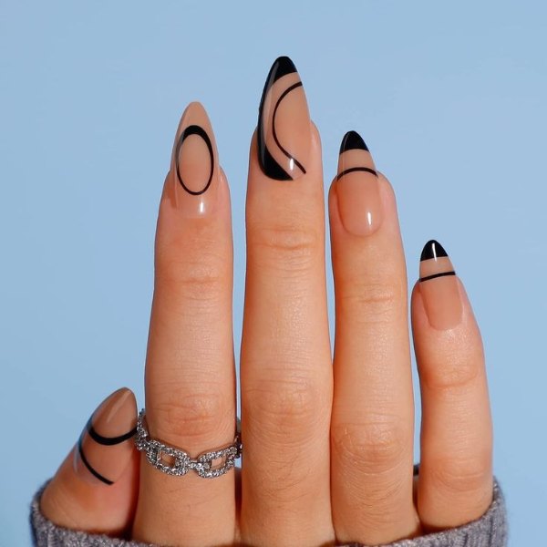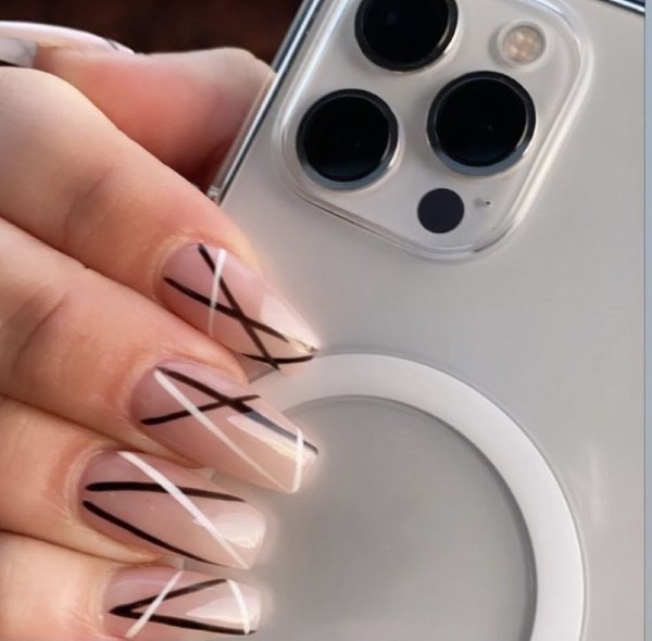 استفاده از خطوط مشکی در طراحی ناخن، حالتی ظریف و مینیمال به ناخن میبخشند و نتیجه نهایی کار بسیار دیدنی خواهدبود.