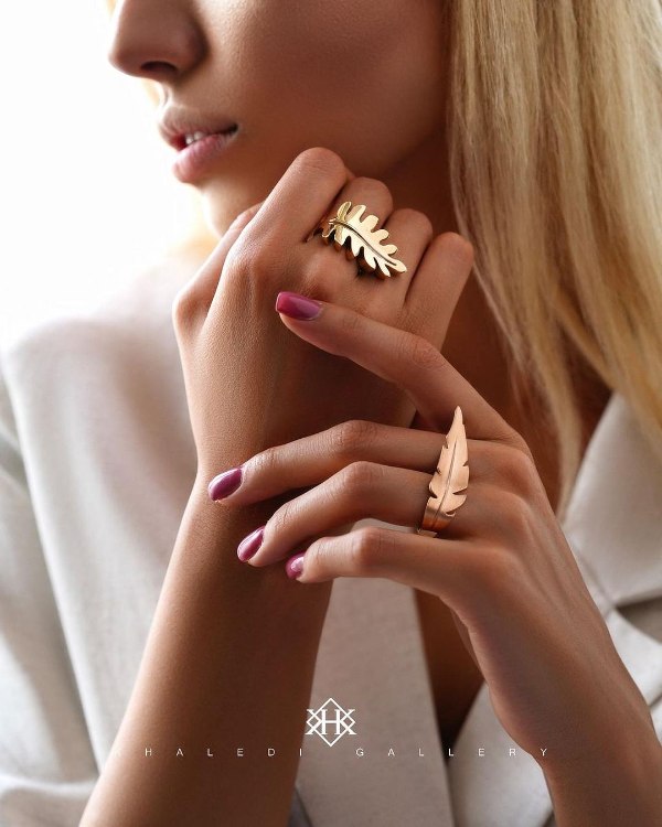 انگشترهای برگ، نماد طبیعت و مناسب خانمهای خوش سلیقه و شیک پوش هستند.