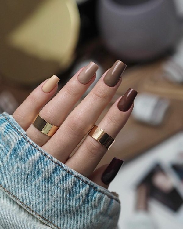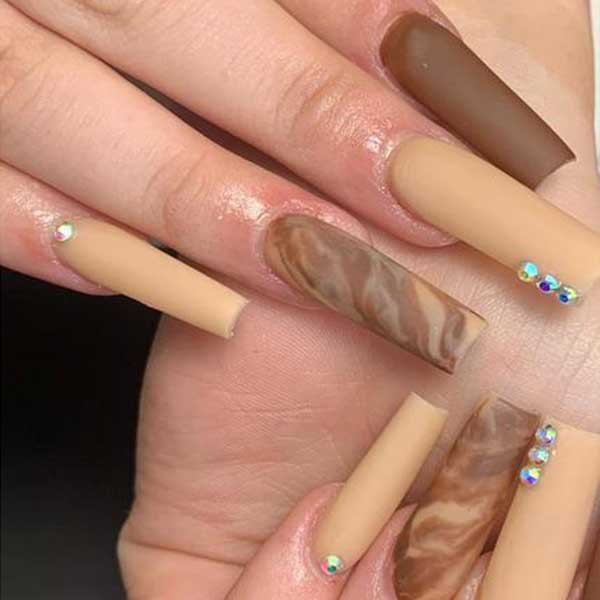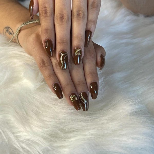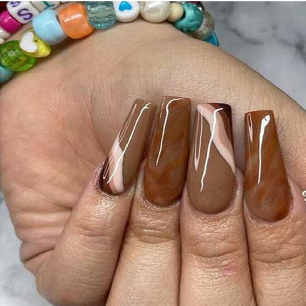 قهوهای رنگی طبیعی و خاکی است و در تمام طول سال برای ناخن شما انتخابی فوقالعاده است. همچنین به هر رنگ پوستی میآید و برای پاییز طراحیهای بی نظیری با آن میتوان خلق کرد.
