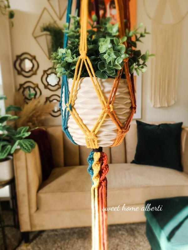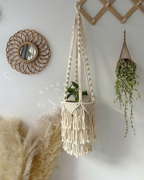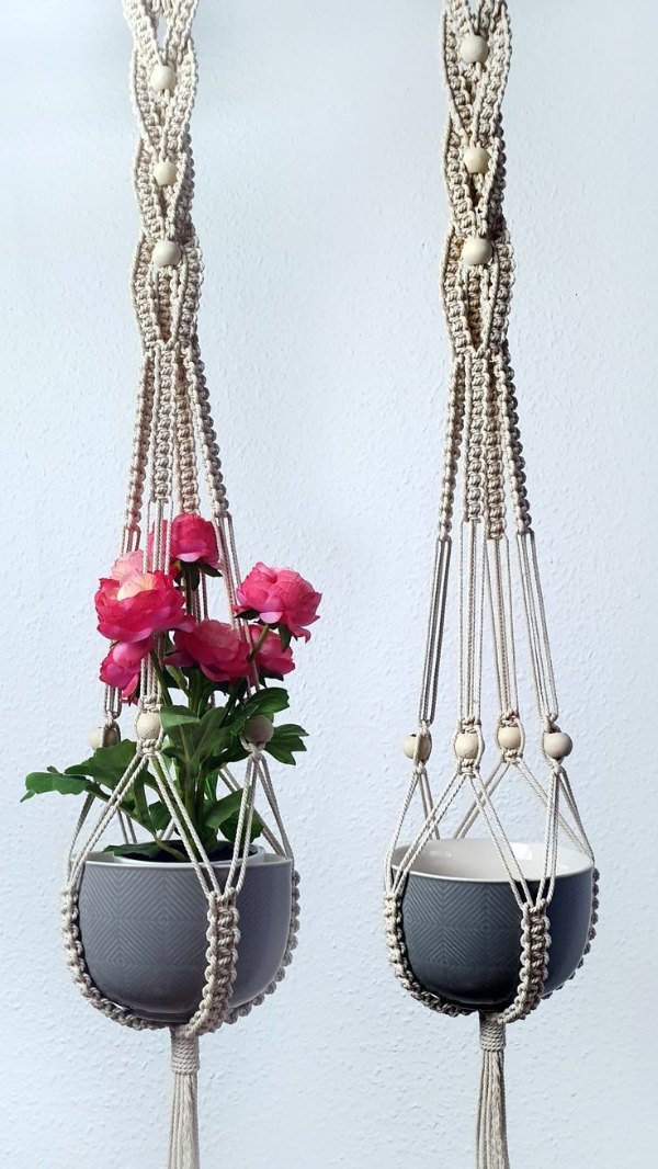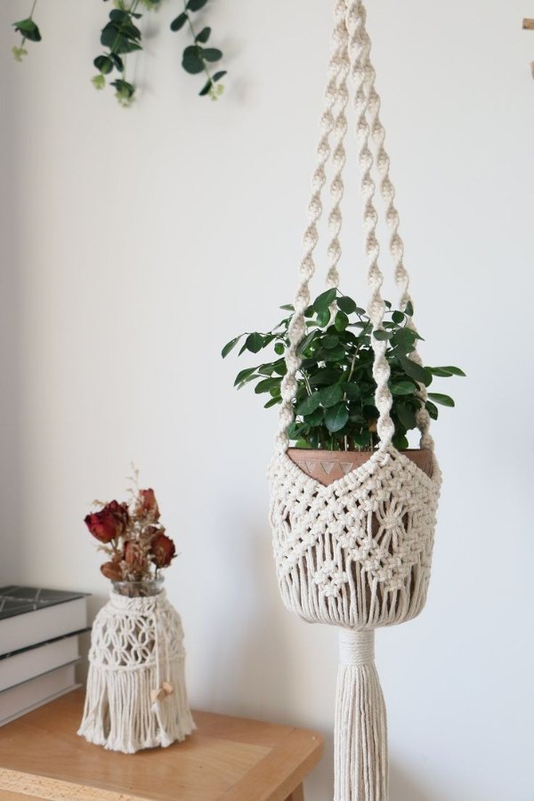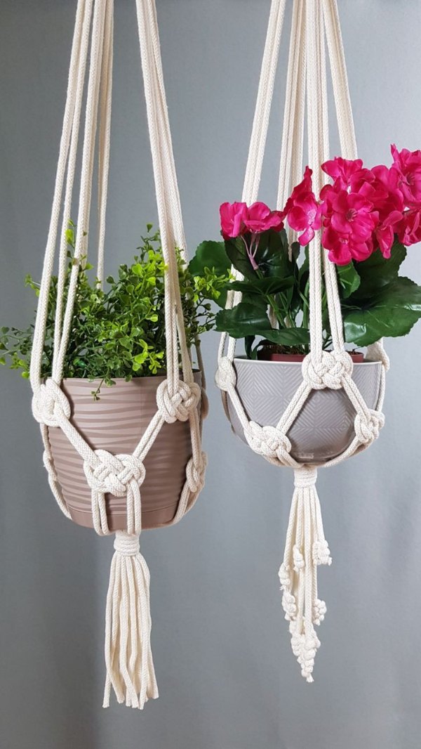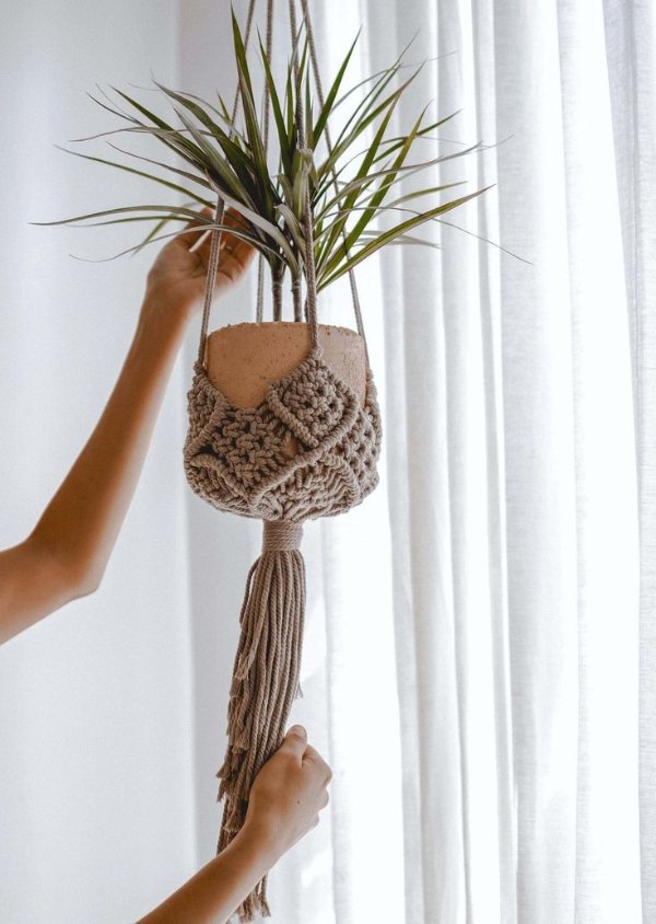 آویزان کردن گل‌های گلدان با استفاده از آویز مکرومه‌ای، می‌تواند جلوه‌ای بسیار خاص و زیبا به گیاه و فضای اطراف خود ببخشد.