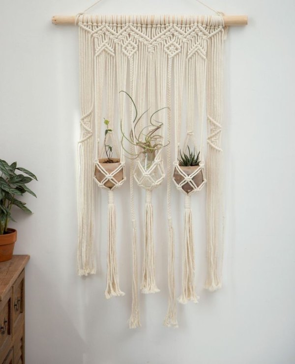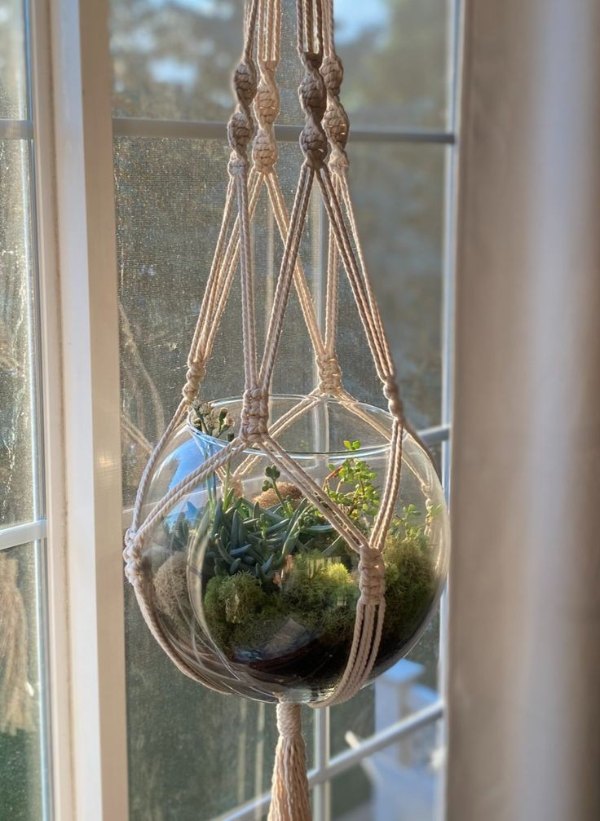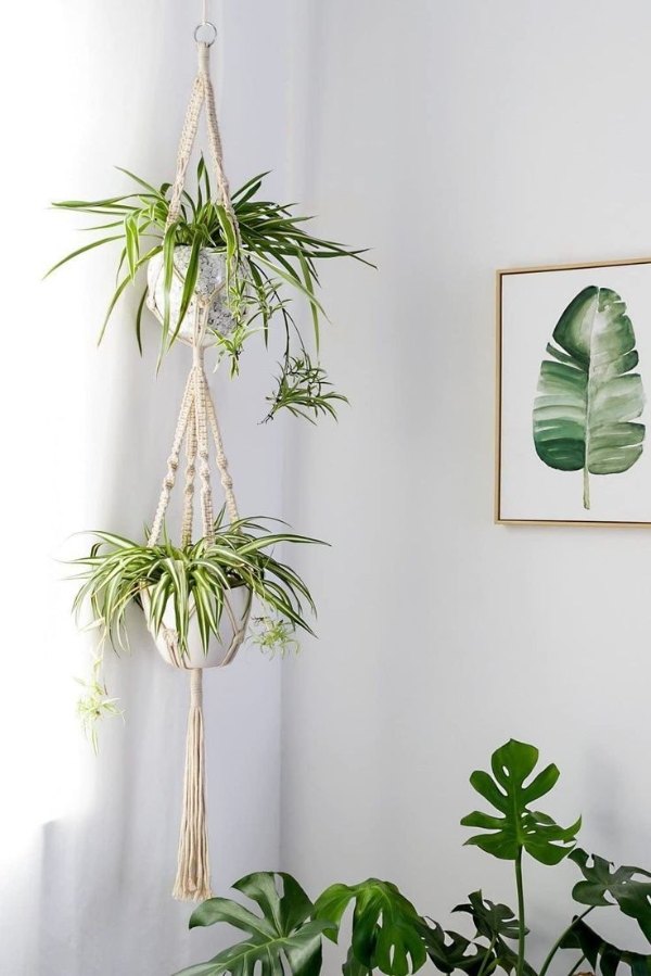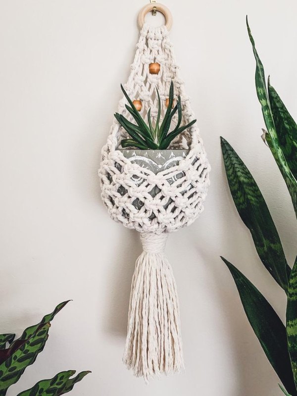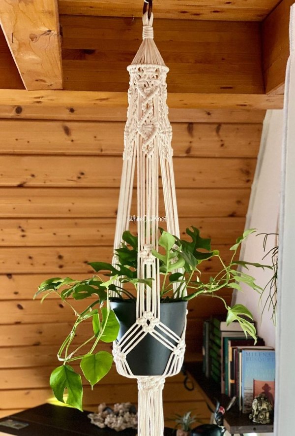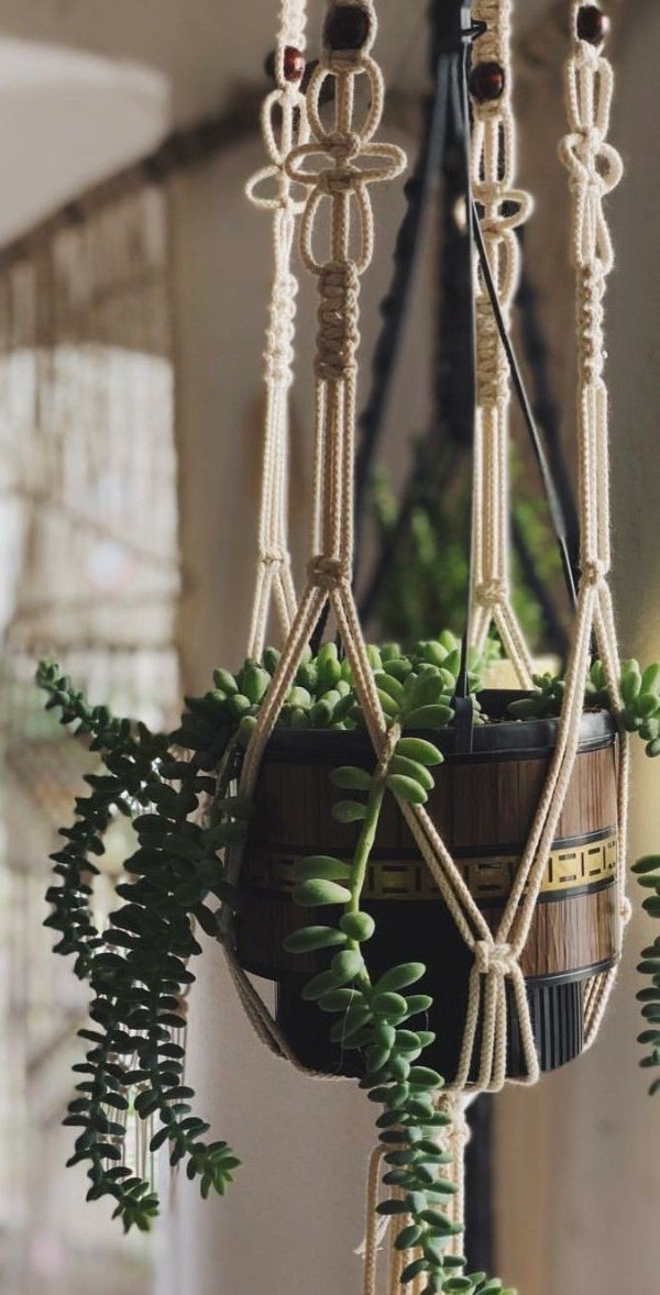 آویزان کردن گل‌های گلدان با استفاده از آویز مکرومه‌ای، می‌تواند جلوه‌ای بسیار خاص و زیبا به گیاه و فضای اطراف خود ببخشد.